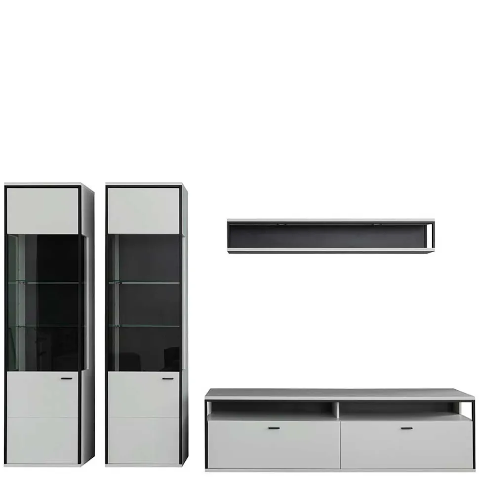 - Edle Wohnwand in Weiß und Schwarzgrau