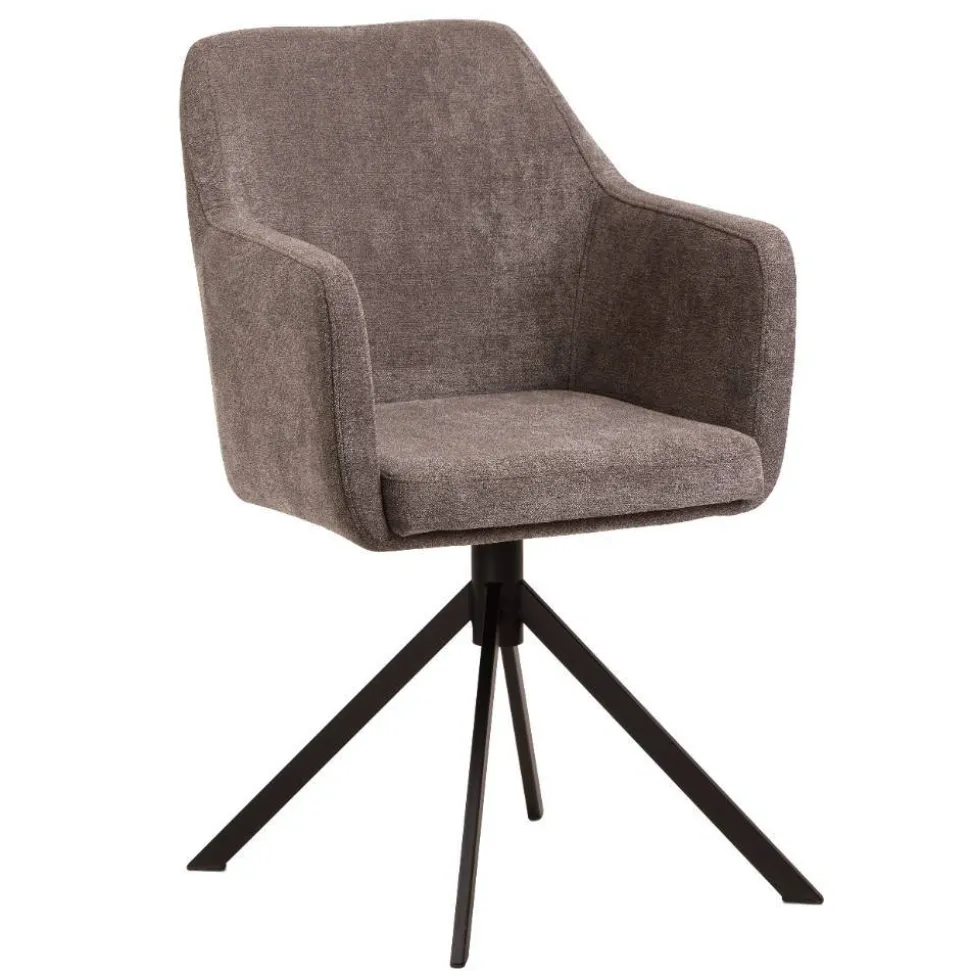 Der Armlehnenstuhl „Myrano“ bringt in warmem Braun und elegantem Schwarz zeitlose Gemütlichkeit in Ihr Zuhause. Ob am Esstisch, im Homeoffice oder als stilvoller Solist in einer Leseecke – „Myrano“ fügt sich in moderne wie klassische Wohnkonzepte ein und setzt dabei durch seine kantige Silhouette und das schwarze Stativgestell gekonnte Akzente.