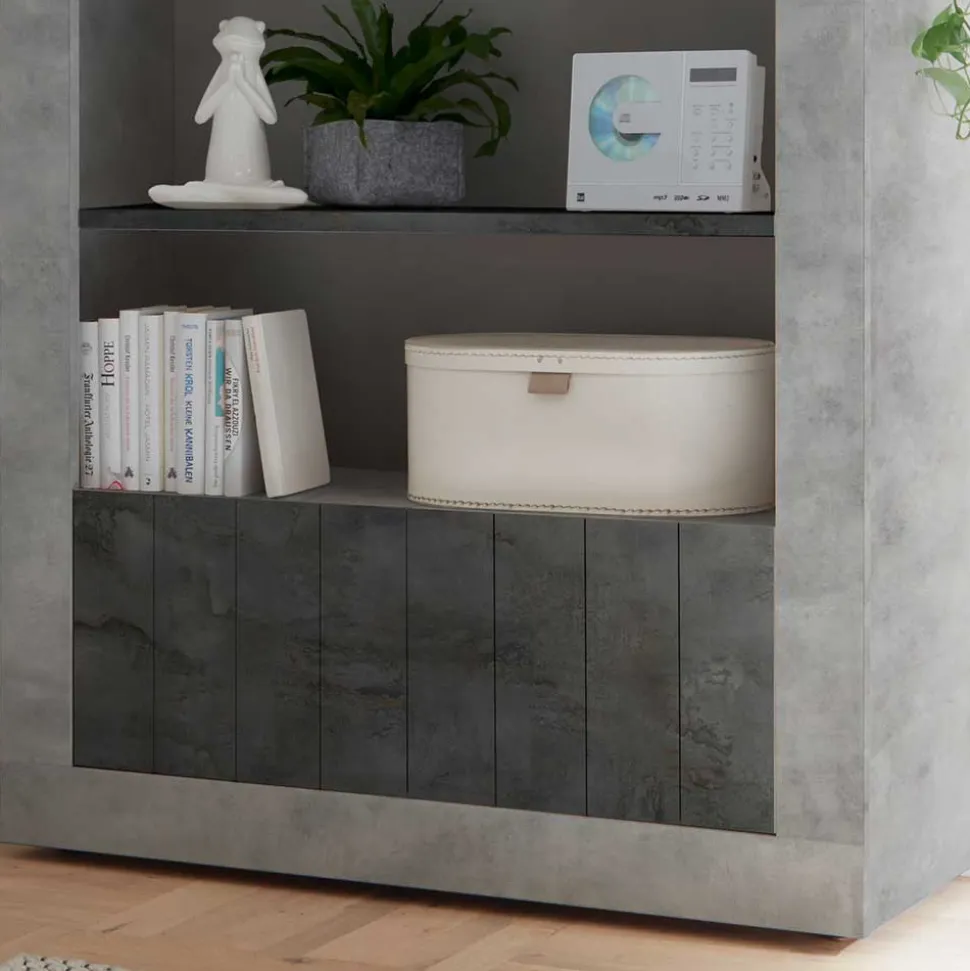 Stilvolles Wohnen beginnt mit dem richtigen Möbelstück. Standregal „Bari“ verkörpert perfekt den modernen Industry und Loft Stil und bietet eine harmonische Kombination aus Funktionalität und Ästhetik. Hergestellt aus robuster Spanplatte, zeugt dieses Regal von Langlebigkeit und Stabilität. Die melaminbeschichtete Oberfläche, kombiniert mit dunkelgrauen Elementen in Steinoptik und dem Rest in grauer Betonoptik, bringt nicht nur einen Hauch von Raffinesse in Ihre vier Wände, sondern erklärt sich auch durch ihre kratz- und wasserresistente Natur als besonders pflegeleicht.