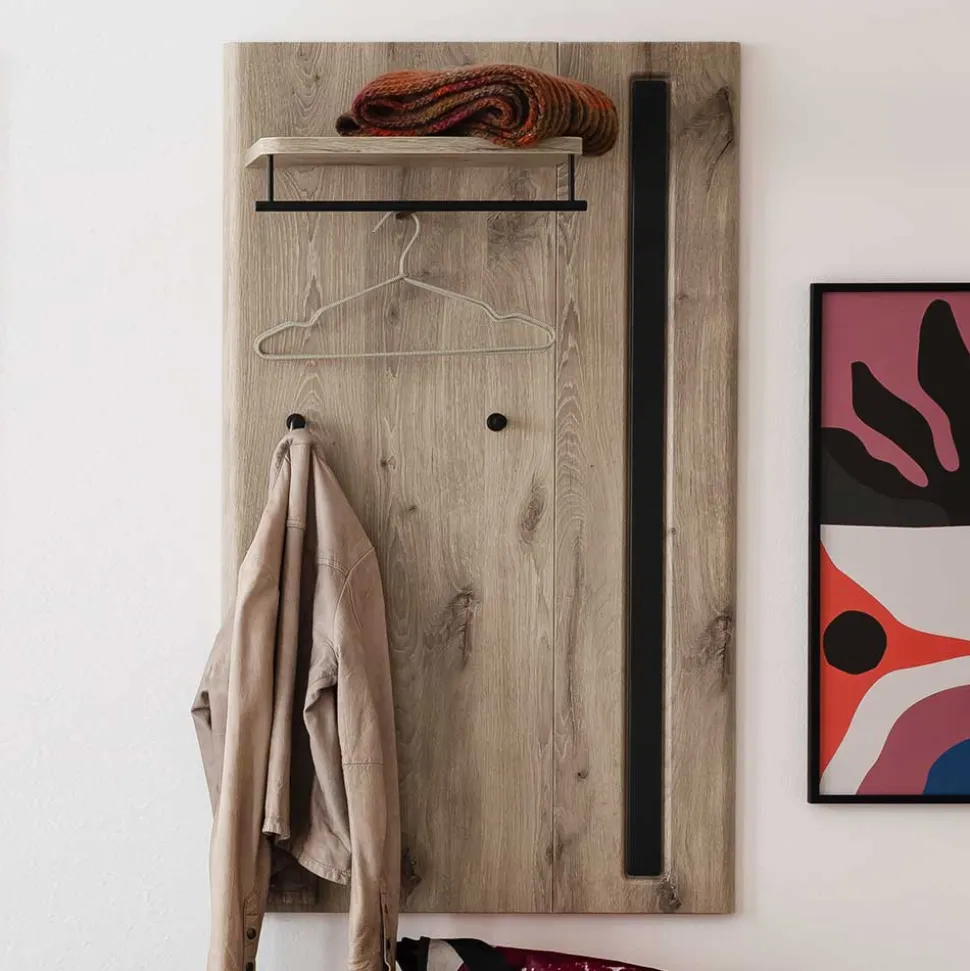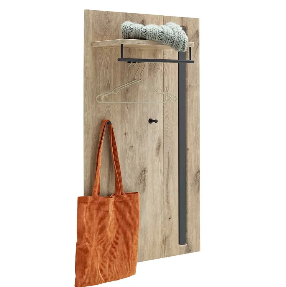 - Praktisches Garderobenpaneel in Wildeichefarben und Dunkelgrau