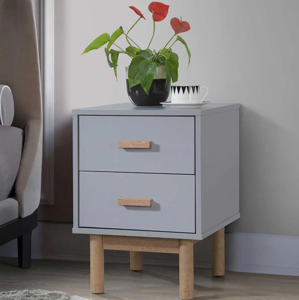 - Kompakte Nachtkommode in Grau und Eichefarben