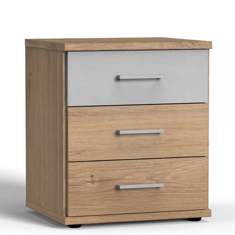 - Praktische Nachtkommode in Eichefarben und Betonoptik Lichtgrau