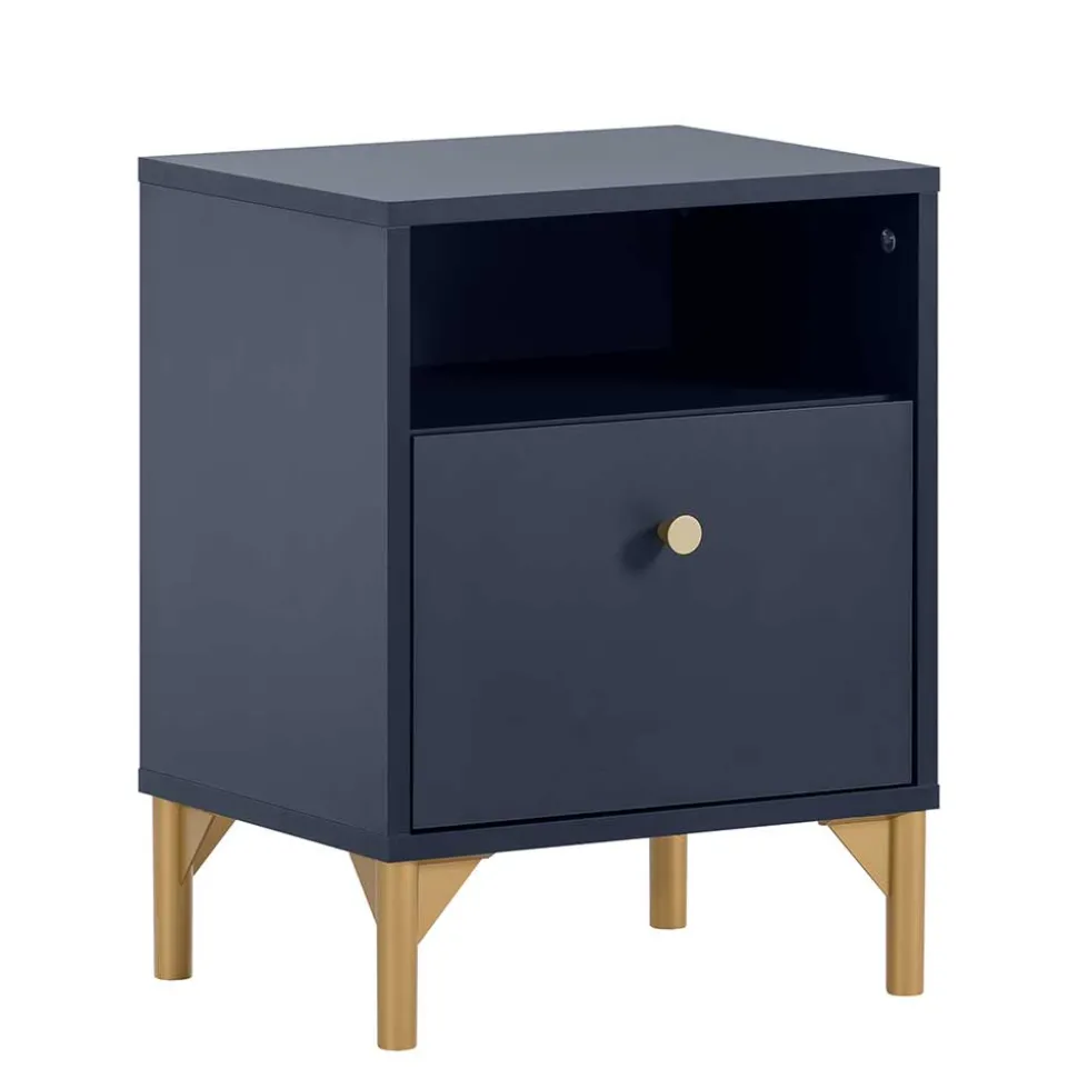 - Top Nachtkommode in Dunkelblau und Goldfarben