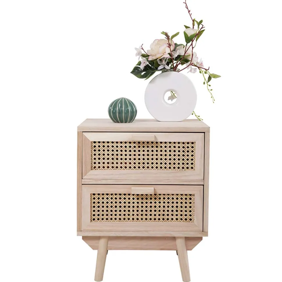 - Aus massivem Paulowniaholz, MDF und Rattan hergestellt