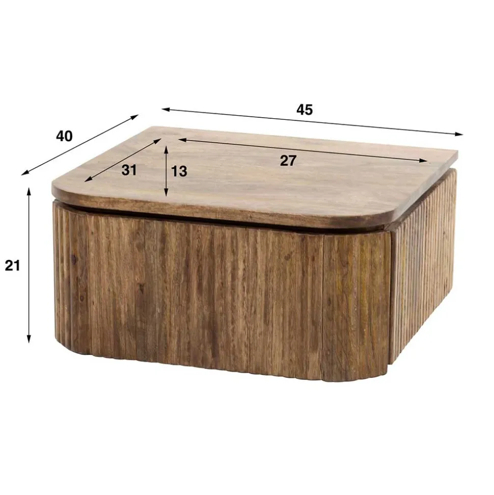 Die Nachtkonsole „Izunamy“ ist aus massivem Mangobaumholz gefertigt, einem Material, das nicht nur äußerst langlebig ist, sondern auch mit einzigartigen Vorzügen glänzt. Mangobaumholz zeichnet sich durch seine bemerkenswerte Härte und Stabilität aus, was eine lange Lebensdauer gewährleistet. Darüber hinaus ist Mangobaumholz bekannt für seine lebhafte Maserung, die jedem Stück einen unverwechselbaren Charakter verleiht. Mit „Izunamy“ holen Sie sich also nicht nur ein funktionales Möbelstück, sondern auch ein echtes Unikat in Ihr Zuhause.