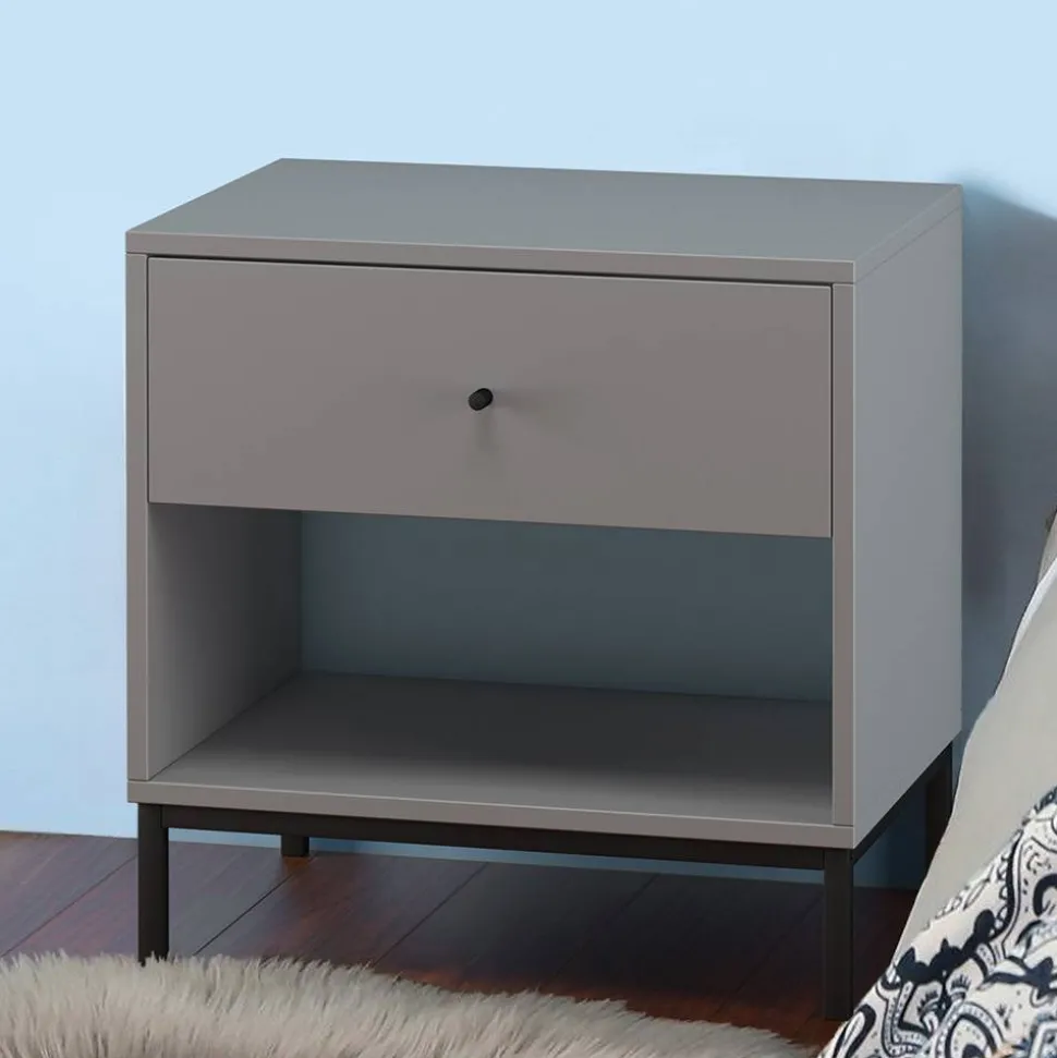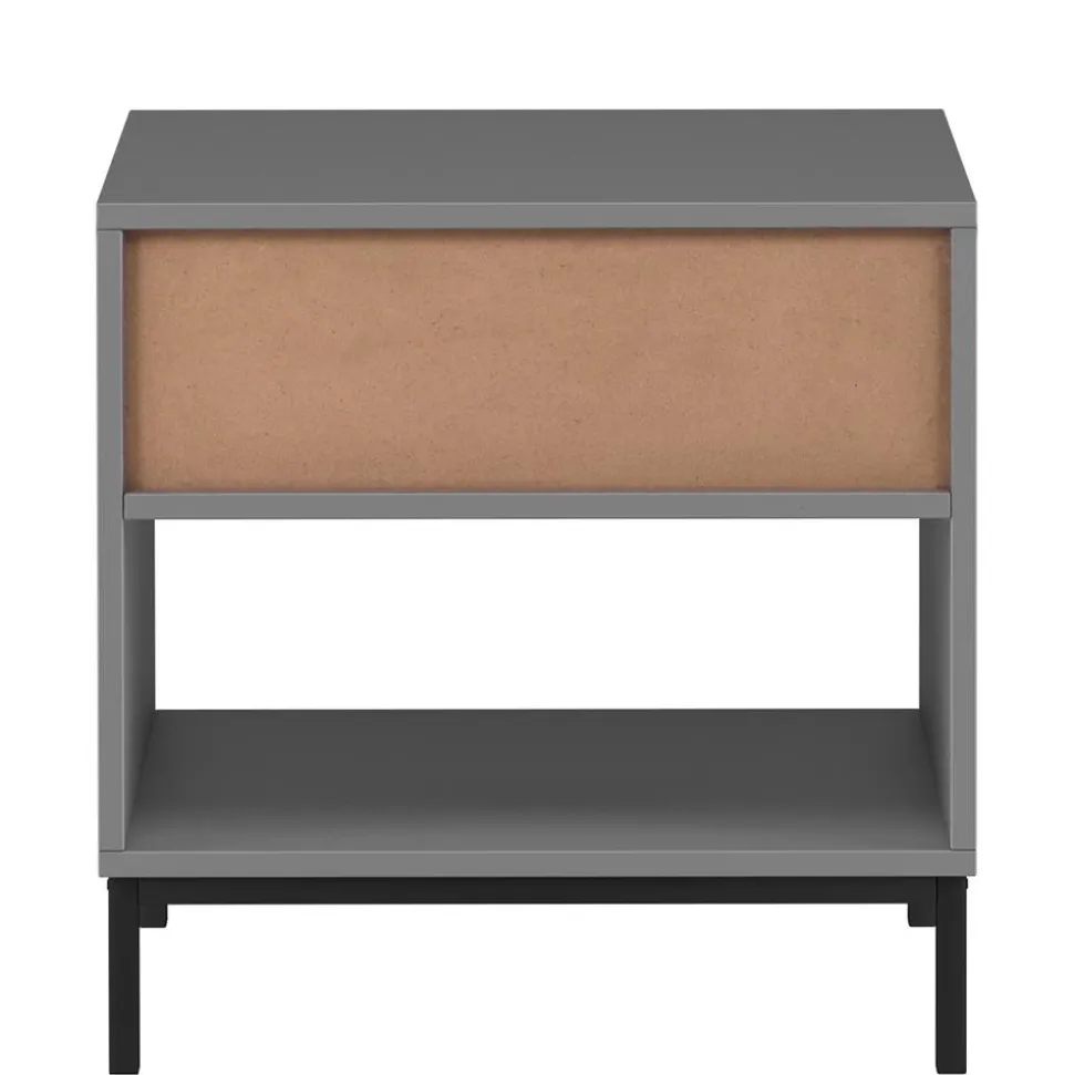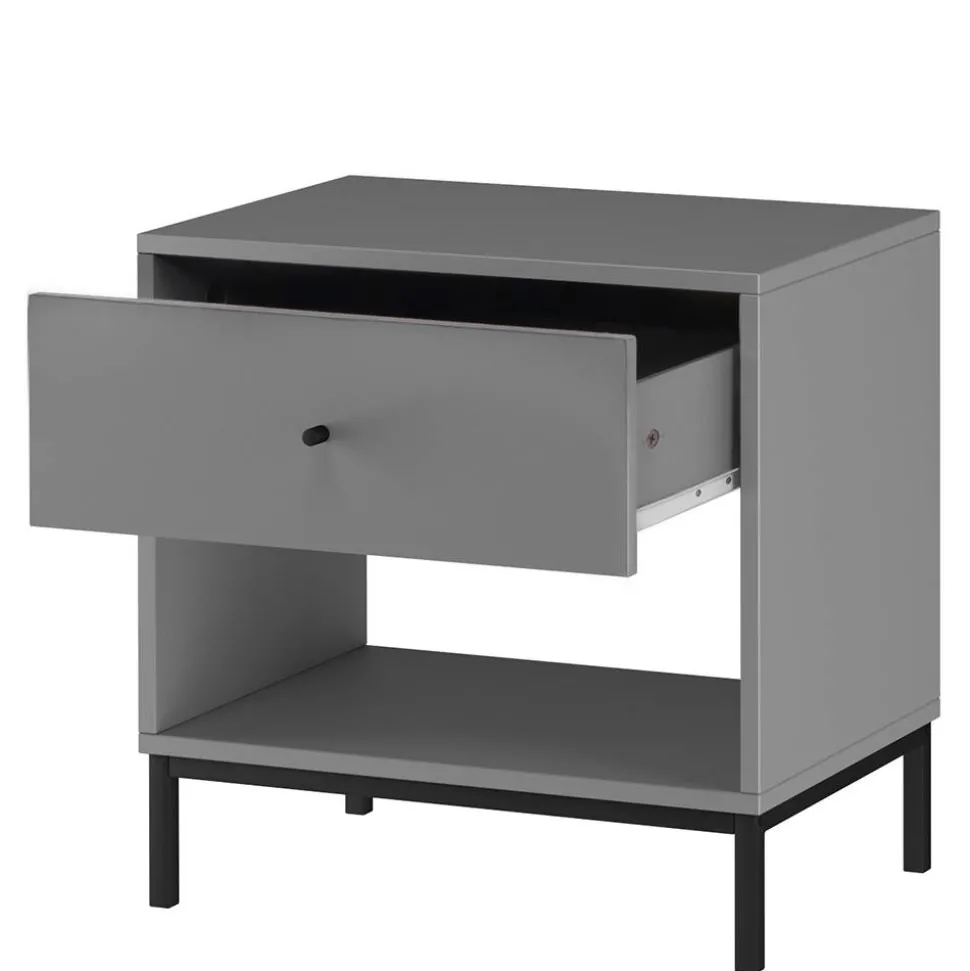 Dank der durchdachten Aufteilung bietet die Nachtkonsole „Lagista“ ausreichend Platz für all Ihre wichtigen Utensilien. Die leichtgängige Schublade mit Metallauszug bietet geschützten Stauraum für kleinere Gegenstände, während das offene Fach darunter ideal für Bücher, Zeitschriften oder Dekoelemente genutzt werden kann. Der schwarze Stiftgriff aus Metall ermöglicht ein müheloses Öffnen und rundet das Design harmonisch ab.