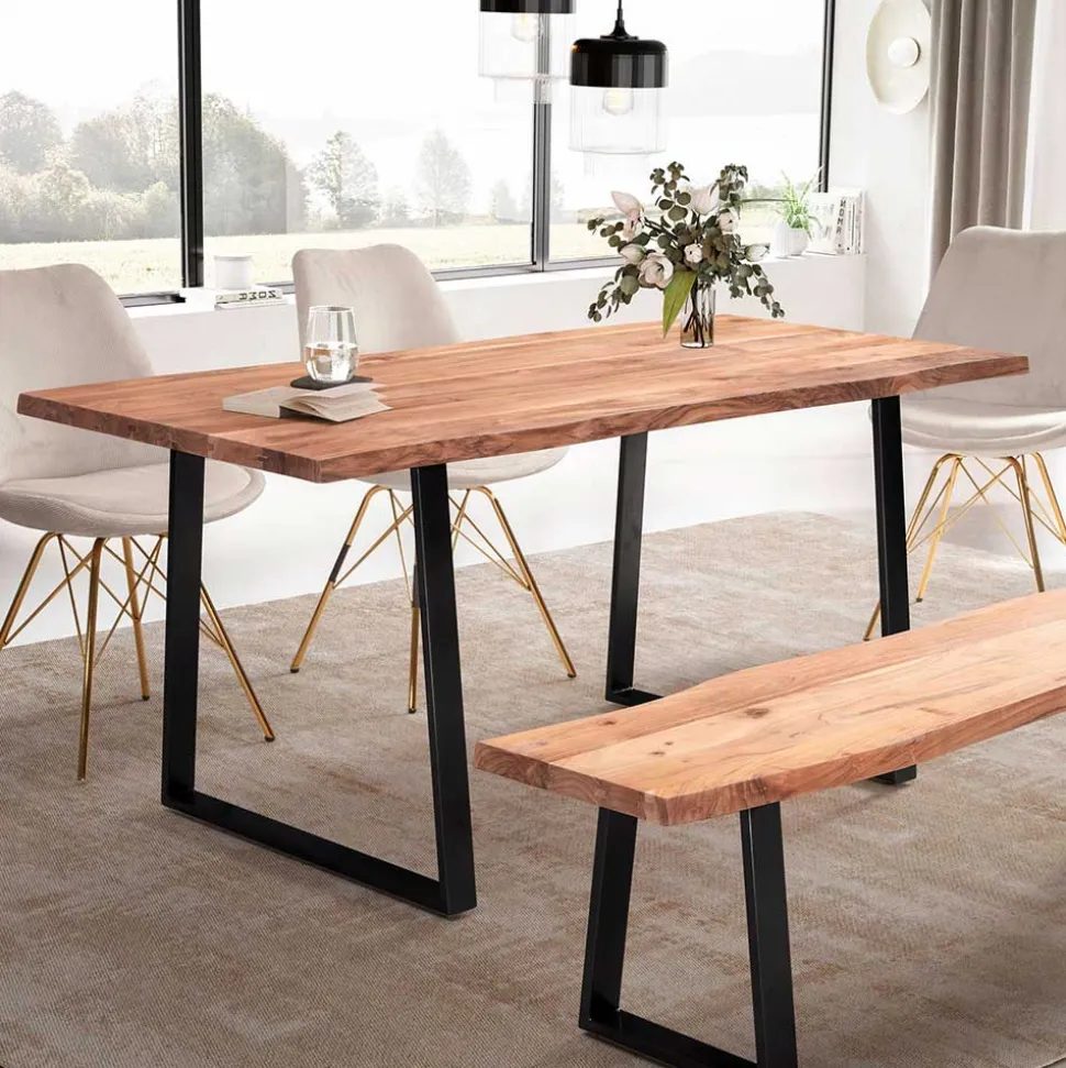 - Robuster Esstisch in Akaziefarben und Schwarz