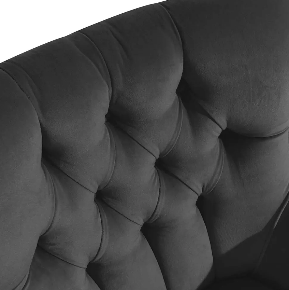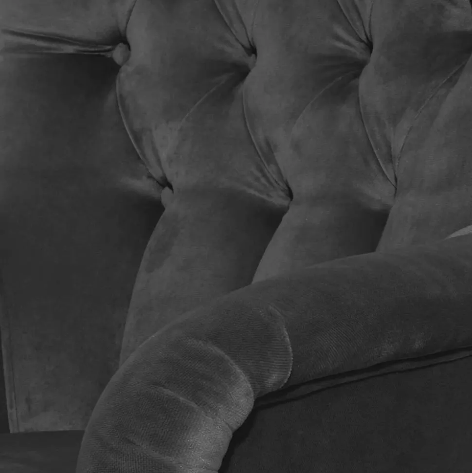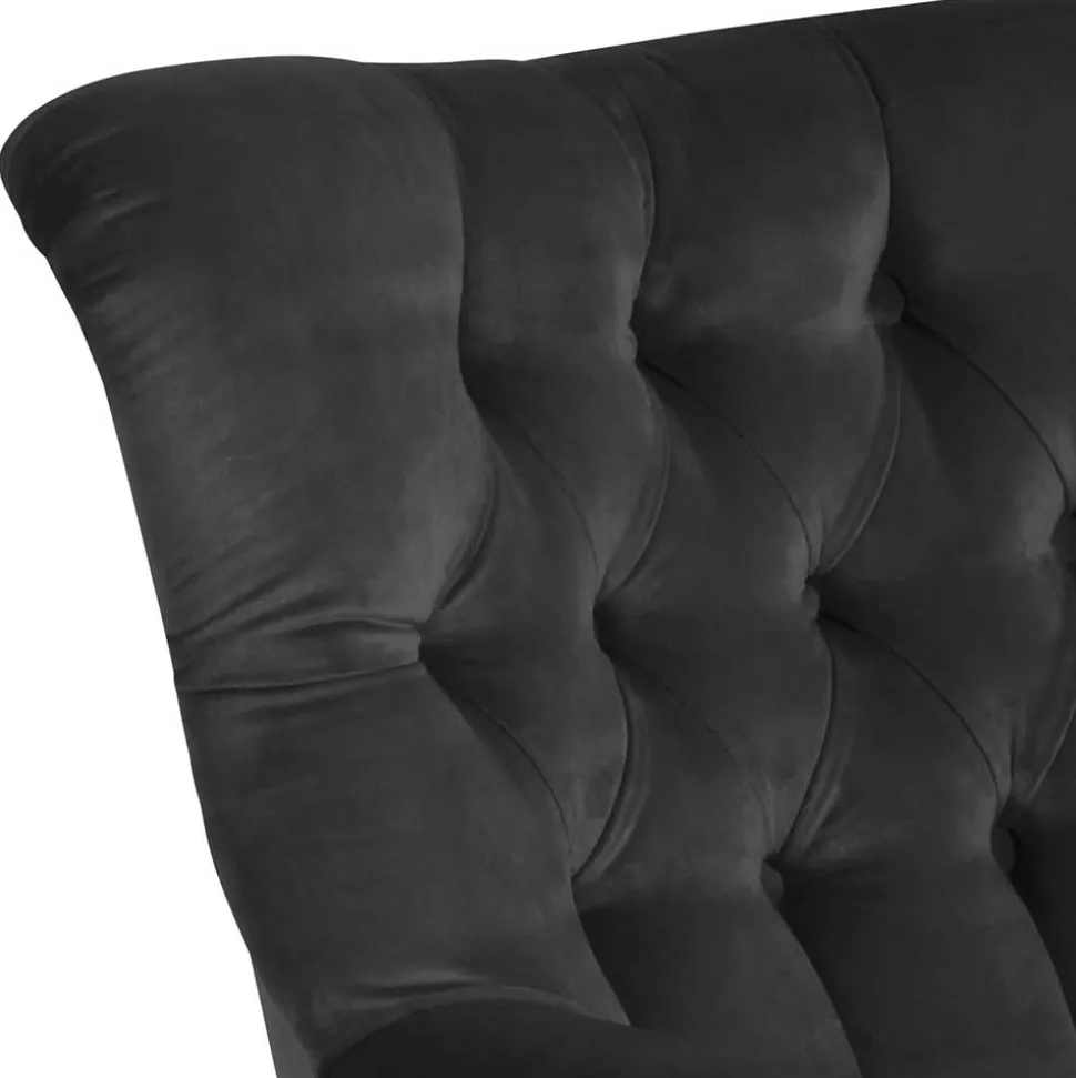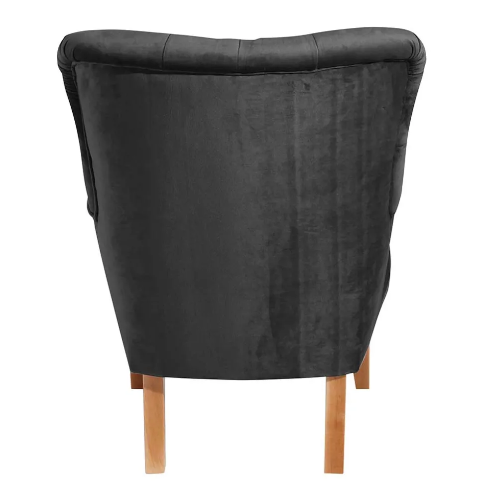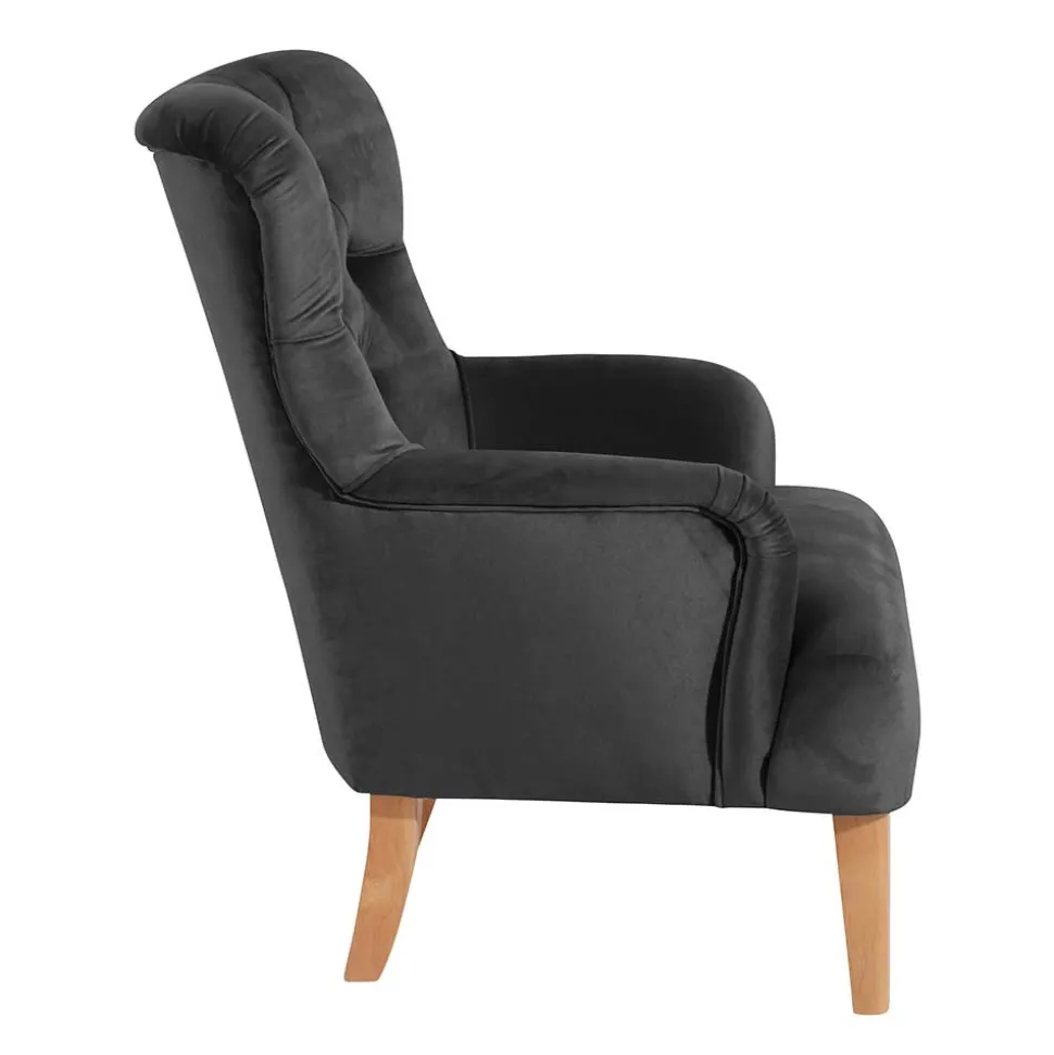 Der Ohrenbackensessel „Camcupa“ präsentiert sich in einem ansprechenden Anthrazitton, der perfekt mit den natürlichen Buche-Holzbeinen harmoniert. Sein tolles Vintage-Design mit modernem Chic und tiefen Steppungen sowie Knopfheftungen verleiht ihm eine besonders dekorative Note.