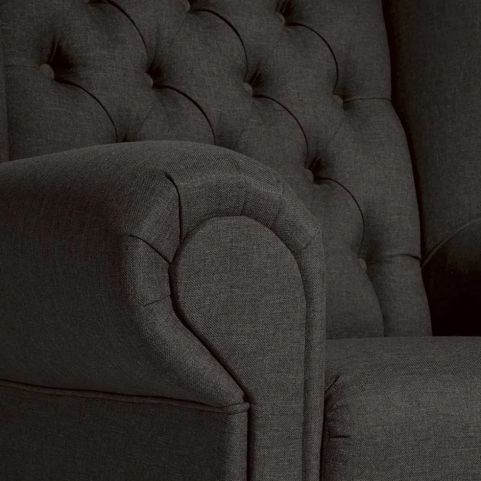 - Aufwändige Gestaltung mit seitlichen Ohren und Knopfsteppungen