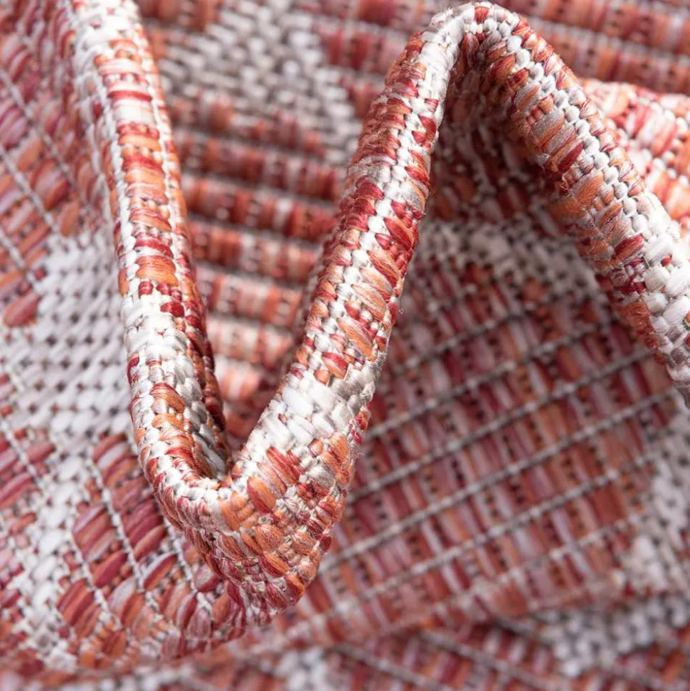 Der Outdoorteppich „Mirror“ bringt mit seinem rostroten Grund und dem cremefarbenen Rauten-Muster eine behagliche Atmosphäre in Ihre Wohn- oder Außenbereiche. Das geometrische Design verleiht dem Teppich eine klare Struktur, während die warme Farbgebung für ein einladendes Ambiente sorgt – ideal für Terrassen, Balkone oder auch als stilvoller Akzent im Wohnzimmer. „Mirror“ ist die perfekte Wahl für alle, die Wohnlichkeit mit einem Hauch von Charakter verbinden möchten.