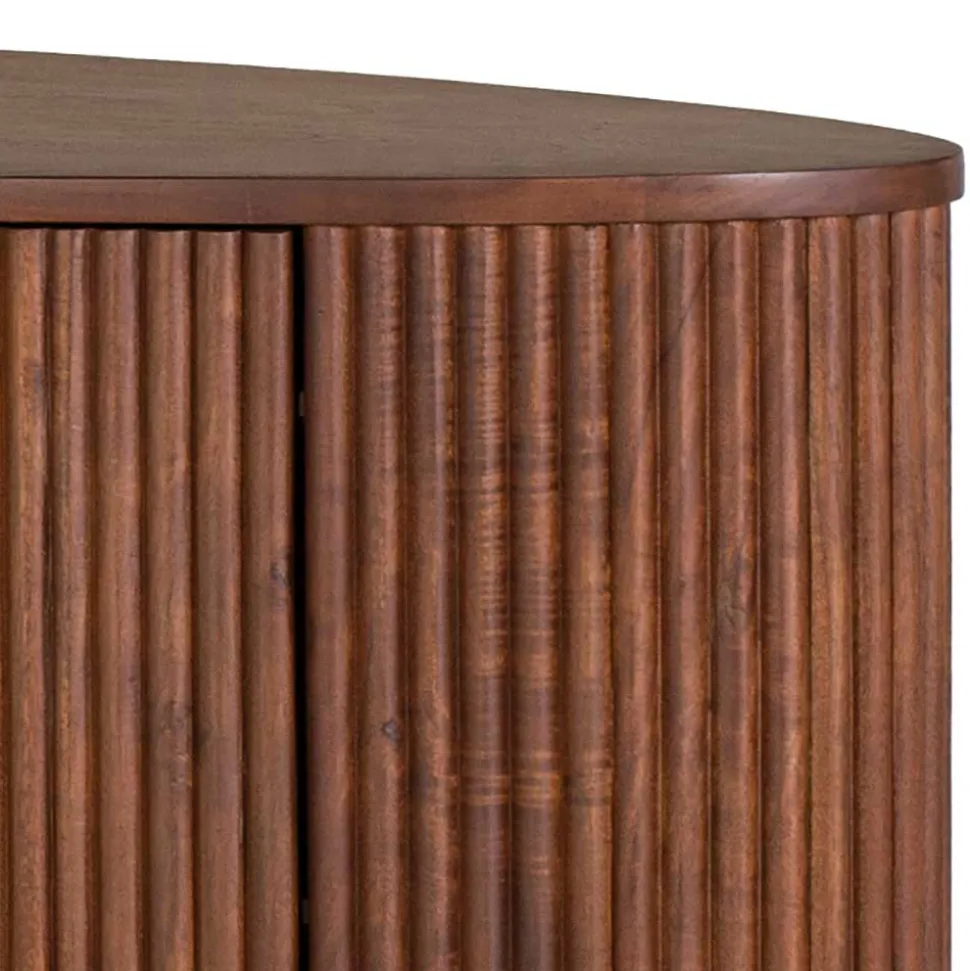 Mit seinem markanten Design wird das ovale Retro TV Lowboard „Chalil“ schnell zum Highlight in Ihrem Wohnzimmer. Die Kombination aus Walnussbraun und Schwarz verleiht dem Möbelstück einen eleganten, gleichzeitig aber auch gemütlichen Charme, der perfekt zu verschiedensten Einrichtungsstilen passt. Die ansprechende ovale Form sorgt für einen modernen Look, der dennoch von der Nostalgie vergangener Zeiten inspiriert ist. Egal, ob vor dem Fernseher oder als dekorativer Stauraum – „Chalil“ ist ein Möbelstück, das in keinem Raum fehlen sollte.