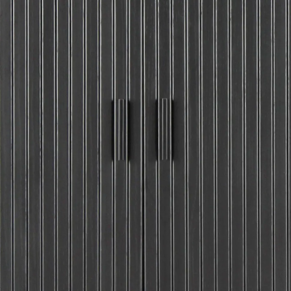 Mit einer Breite von 100 cm, einer Höhe von 118 cm und einer Tiefe von 40 cm bietet das Highboard großzügigen Stauraum, ohne den Raum zu dominieren. Hinter den kunstvoll in Lamellenoptik gestalteten Schiebetüren offenbart sich ein durchdachtes Innenleben mit sechs Fächern und vier stabilen Einlegeböden. Ganz gleich, ob Geschirr, Gläser, Dokumente oder persönliche Schätze – alles findet seinen Platz, gut geschützt und stilvoll inszeniert. Die Metall-Griffleisten in mattem Schwarz setzen dabei ein feines, modernes Detail, das perfekt mit der eleganten Holzoptik harmoniert.