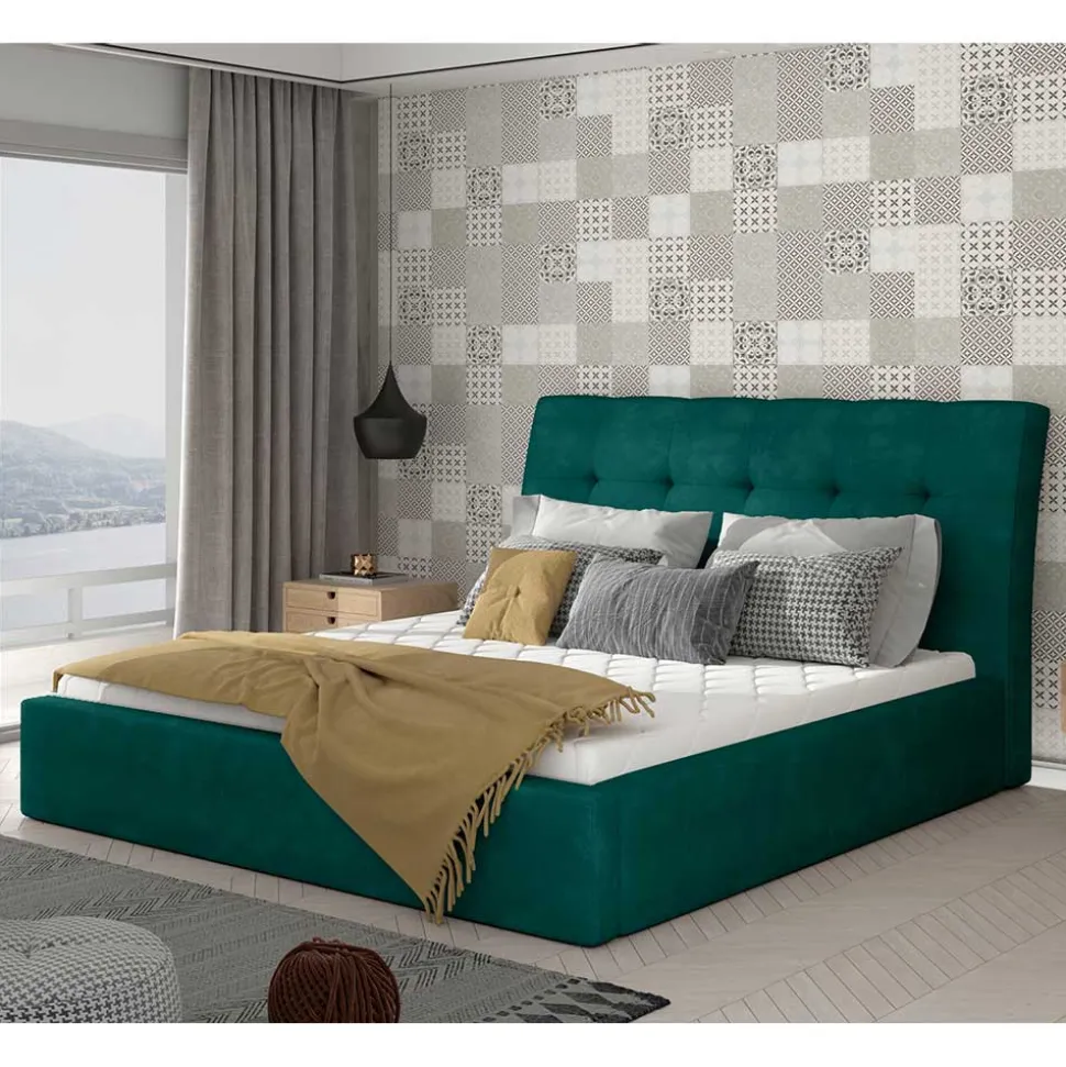 Mit seinem modernen und stilvollen Look wird das Polsterbett „Janilea“ zum absoluten Eyecatcher in Deinem Schlafzimmer. Der luxuriöse Velours-Bezug in einem tiefen, edlen Dunkelgrün sorgt für einen Hauch von Eleganz und Gemütlichkeit zugleich. Velours, ein hochwertiger Stoff aus 100 % Polyester, besticht durch seine samtige Oberfläche, die nicht nur unglaublich weich ist, sondern auch langlebig und strapazierfähig bleibt. Flecken oder Abnutzung? Kein Problem – Velours ist pflegeleicht und behält seinen edlen Look über Jahre hinweg.