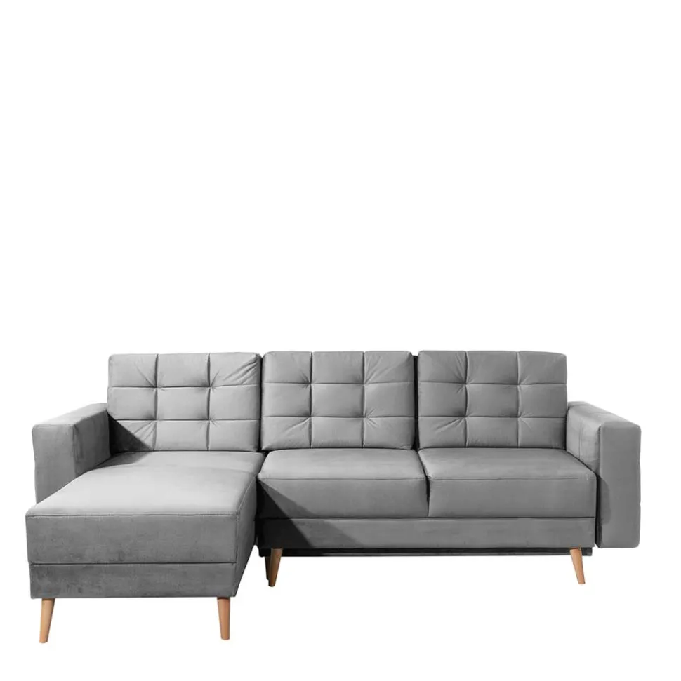 Dieses multifunktionale Sofa ist mit einer Auszugfunktion ausgestattet, die es ermöglicht, die Sitzfläche vorzuziehen und die Rückenlehne zu einer Schlaffläche umzufalten. Perfekt für Gäste oder als zusätzliche Liegefläche. Die integrierte Ottomane kann sowohl links als auch rechts montiert werden, was „Pleasure“ zu einer idealen Lösung für jede Raumkonfiguration macht. Nicht zu vergessen der praktische Bettkasten, der zusätzlichen Stauraum bietet.