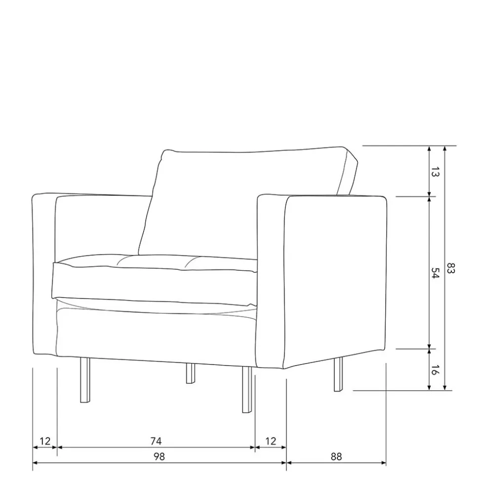- Kastige Armlehnen mit einer Höhe von ca. 72 cm