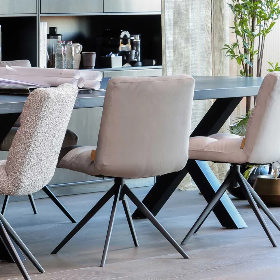 Das schwarz pulverbeschichtete Metall-Stativgestell setzt nicht nur optisch einen markanten Kontrast zum edlen Samtbezug, sondern überzeugt auch funktional auf ganzer Linie. Die praktische Drehfunktion sorgt für maximale Bewegungsfreiheit – ideal beim geselligen Zusammensitzen oder beim Arbeiten am Tisch. Bodenschoner schützen empfindliche Böden zuverlässig vor Kratzern, während die stabile Konstruktion mit einer Tragkraft von bis zu 100 kg auf Langlebigkeit ausgelegt ist.