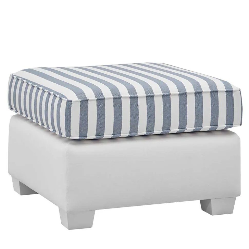 Der quadratische Polsterhocker „Ganbriassa“ ist nicht nur ein Möbelstück, sondern ein Statement für den maritimen Landhausstil. Mit seinem dekorativen Design in Cremeweiß und Blau fügt er sich harmonisch in jeden Raum ein und setzt dabei einen charmanten Akzent.