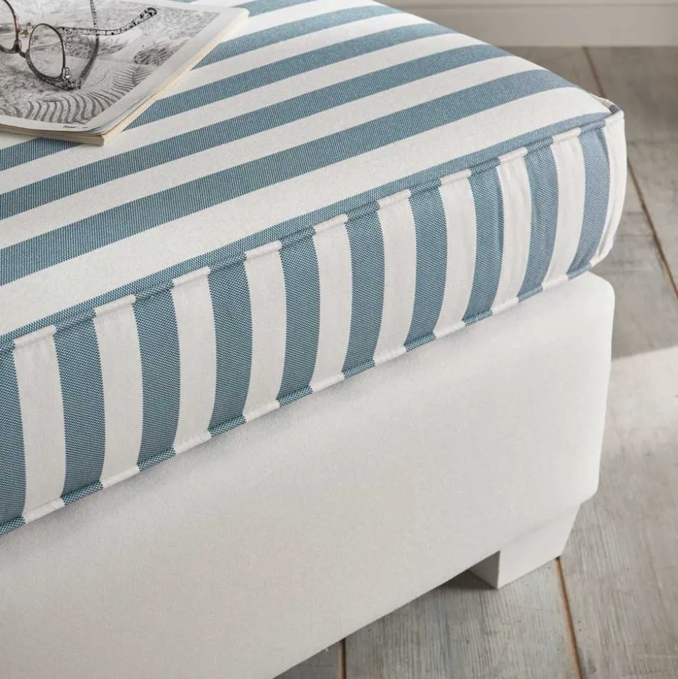 Das robuste Untergestell aus Holzwerkstoff bildet die solide Basis für diesen Hocker. Der hochwertige Bonell-Federkern auf Wellenunterfederung sorgt in Kombination mit der festen Komfortschaumpolsterung für ein bequemes Sitzgefühl. Der pflegeleichte Microfaserbezug – zum Teil mit Streifenmuster – garantiert nicht nur eine einfache Reinigung, sondern beeindruckt auch mit einer Strapazierfähigkeit von 70.000 Scheuertouren nach Martindale, und das bei minimaler Pillingbildung (4-5).