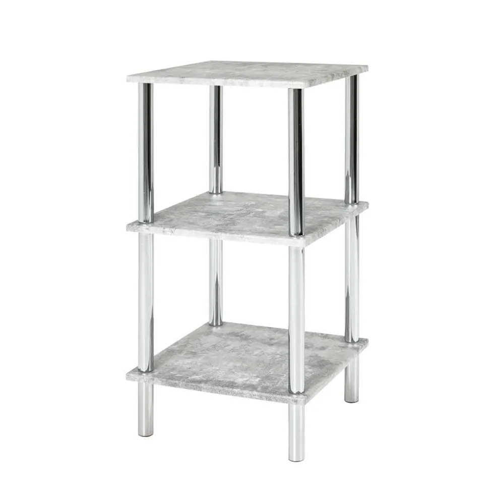 - Oberplatte und zwei Böden aus MDF im Beton Dekor foliert, Gestell aus verchromtem Stahl