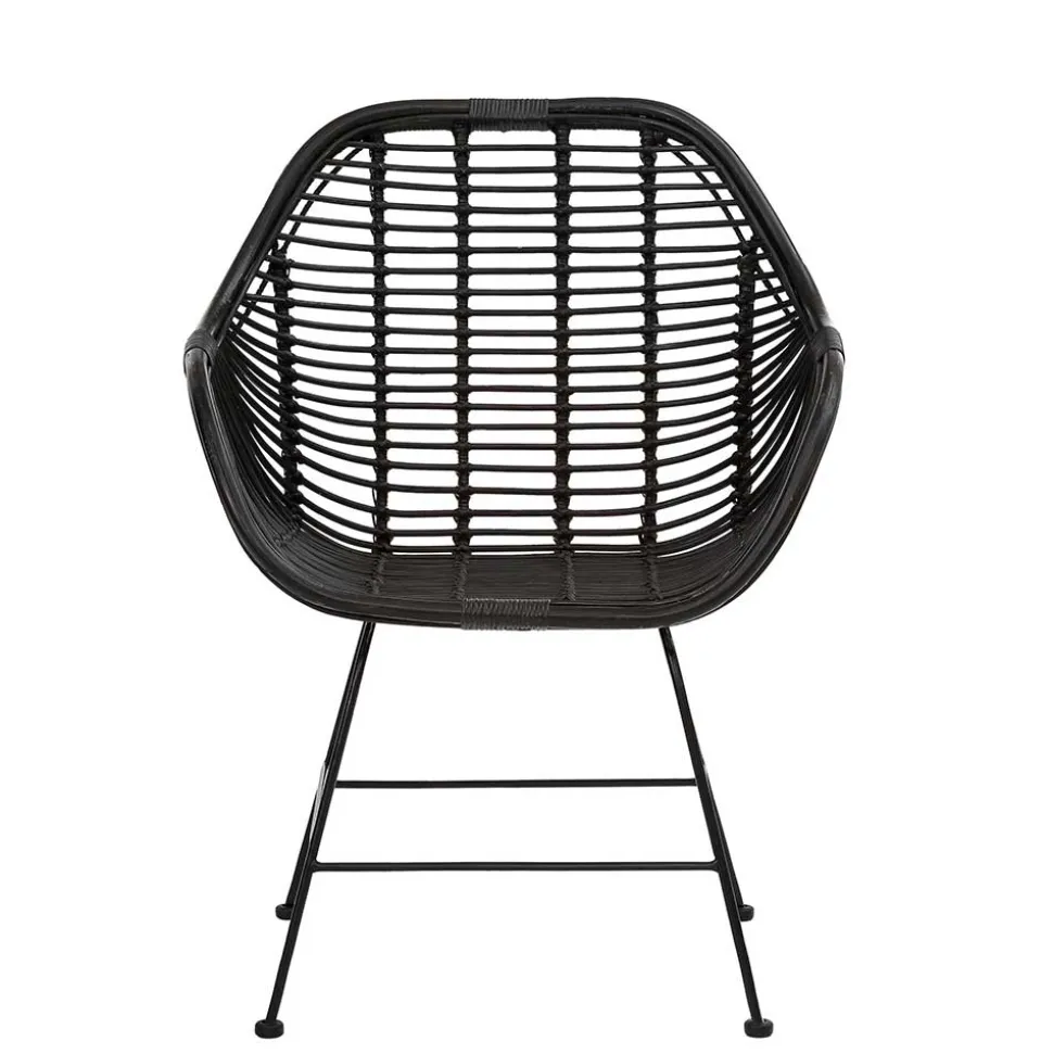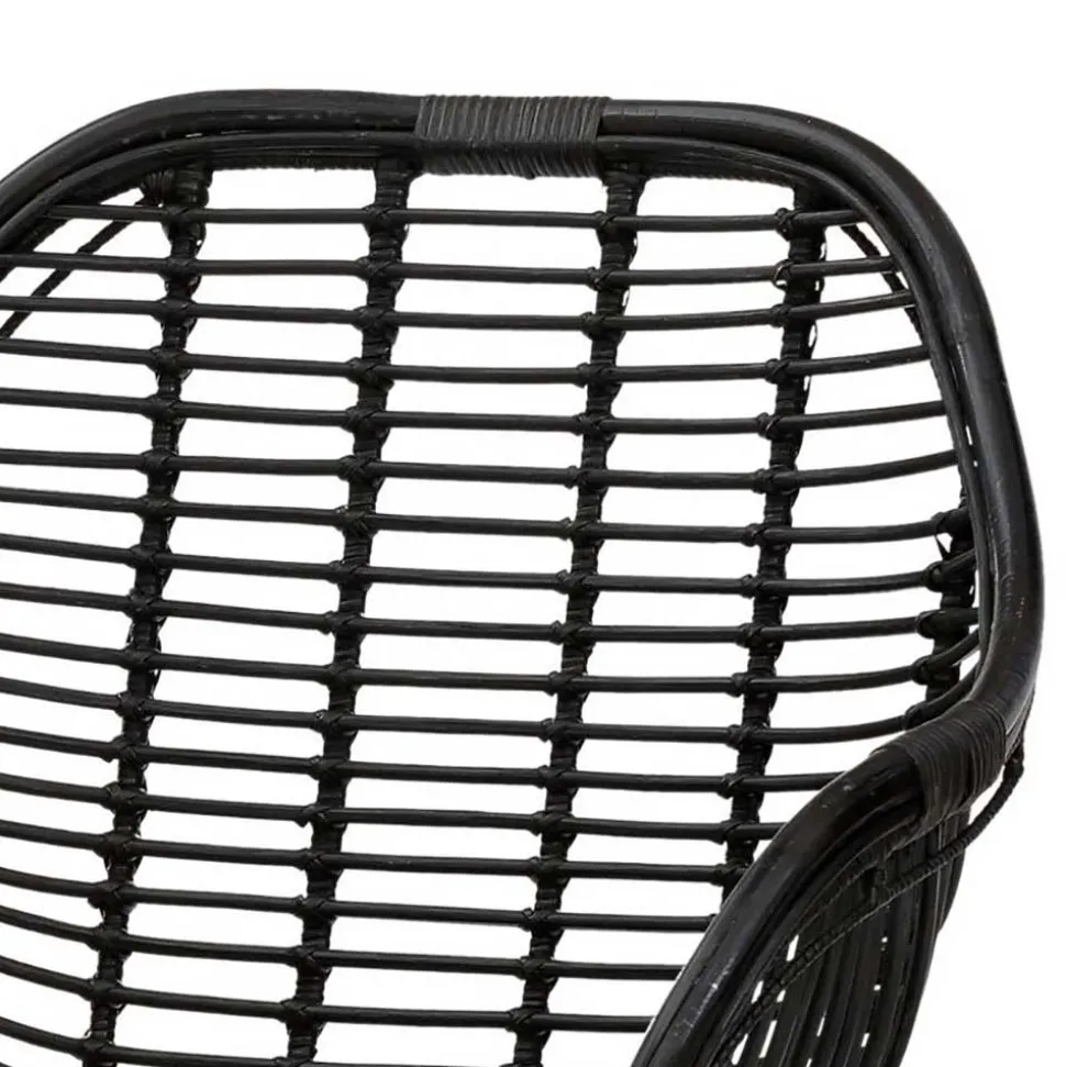 Rattan und Metall – ein Duo, das sich nicht nur optisch hervorragend ergänzt, sondern auch funktional überzeugt. Das von Hand verarbeitete Rattangeflecht verleiht dem Bregenza-Stuhl eine warme, natürliche Ausstrahlung. Rattan gilt als besonders leicht, flexibel und dabei enorm robust – ein echtes Naturprodukt mit Charakter. Durch die schwarze Lackierung wird die edle Struktur betont und zusätzlich geschützt. Das Metallgestell, ebenfalls schwarz lackiert, sorgt für Stabilität und ein modernes Finish. Die Querstreben verstärken die Konstruktion, während Bodenschoner Ihre Böden zuverlässig schützen.