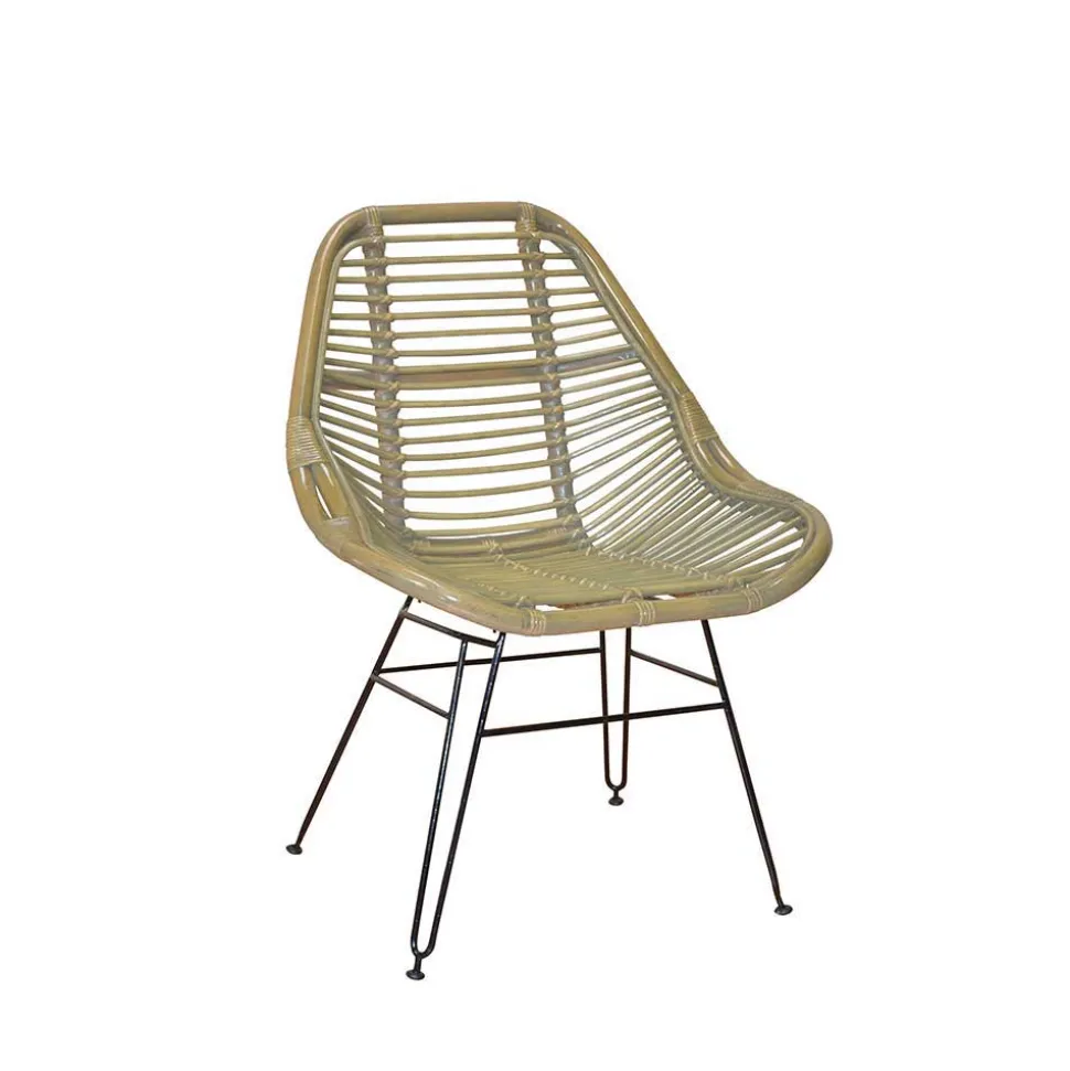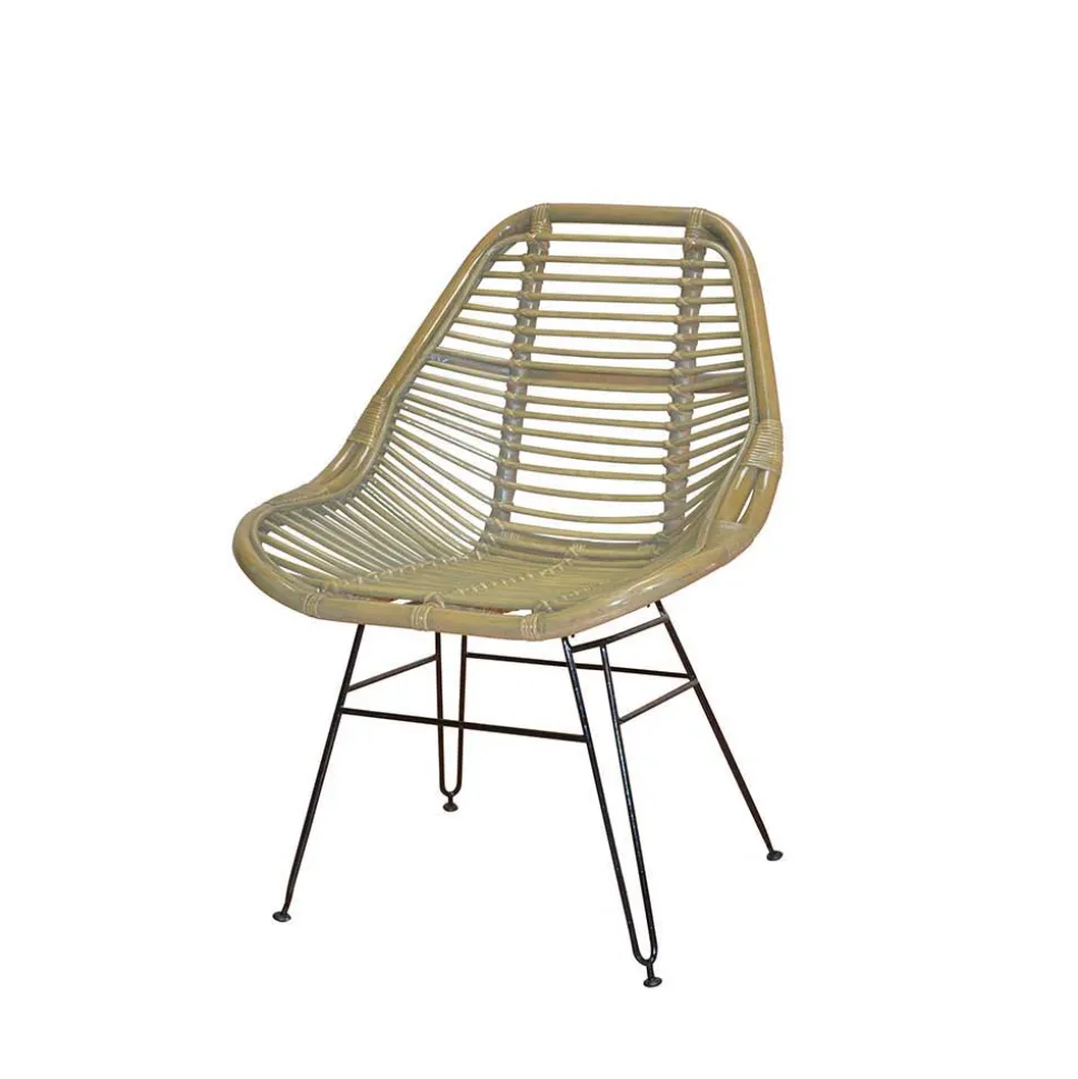 Getragen wird der Rattanstuhl von einem filigranen, aber stabilen Vierfußgestell aus schwarz lackiertem Eisen. Die matte Oberfläche verleiht dem Gestell einen edlen Look, der die Natürlichkeit des Rattans ideal ergänzt. Trotz seiner Leichtigkeit steht Lina sicher und belastbar im Raum – unterstützt durch praktische Bodenschoner, die empfindliche Böden zuverlässig schützen.