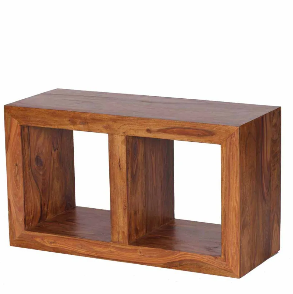 Ein harmonisches Zusammenspiel von goldbraunen, rotbraunen bis tief dunkelbraunen Tönen verleiht dem Regal seine charakteristische sheeshamfarbene Ausstrahlung. Die intensive, abwechslungsreiche Farbgebung sorgt für ein lebendiges Erscheinungsbild und unterstreicht die Einzigartigkeit jedes einzelnen Exemplars. Kein Regal gleicht dem anderen – jedes Stück bringt seinen ganz eigenen, natürlichen Farbverlauf mit sich.