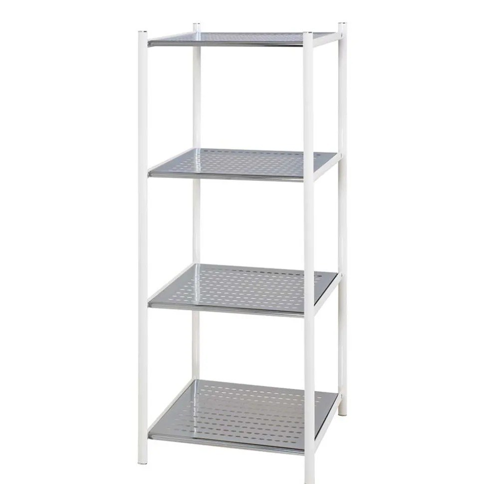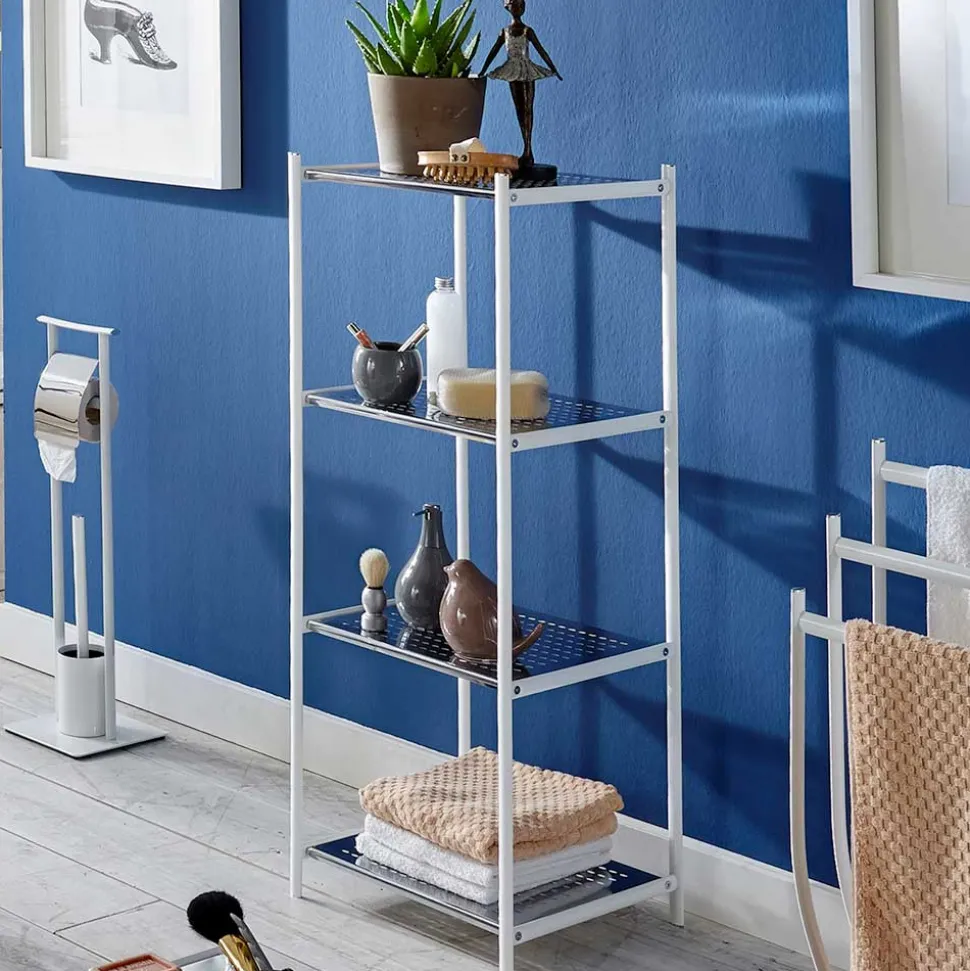 - Badregal in Chromfarben und Hochglanz Weiß