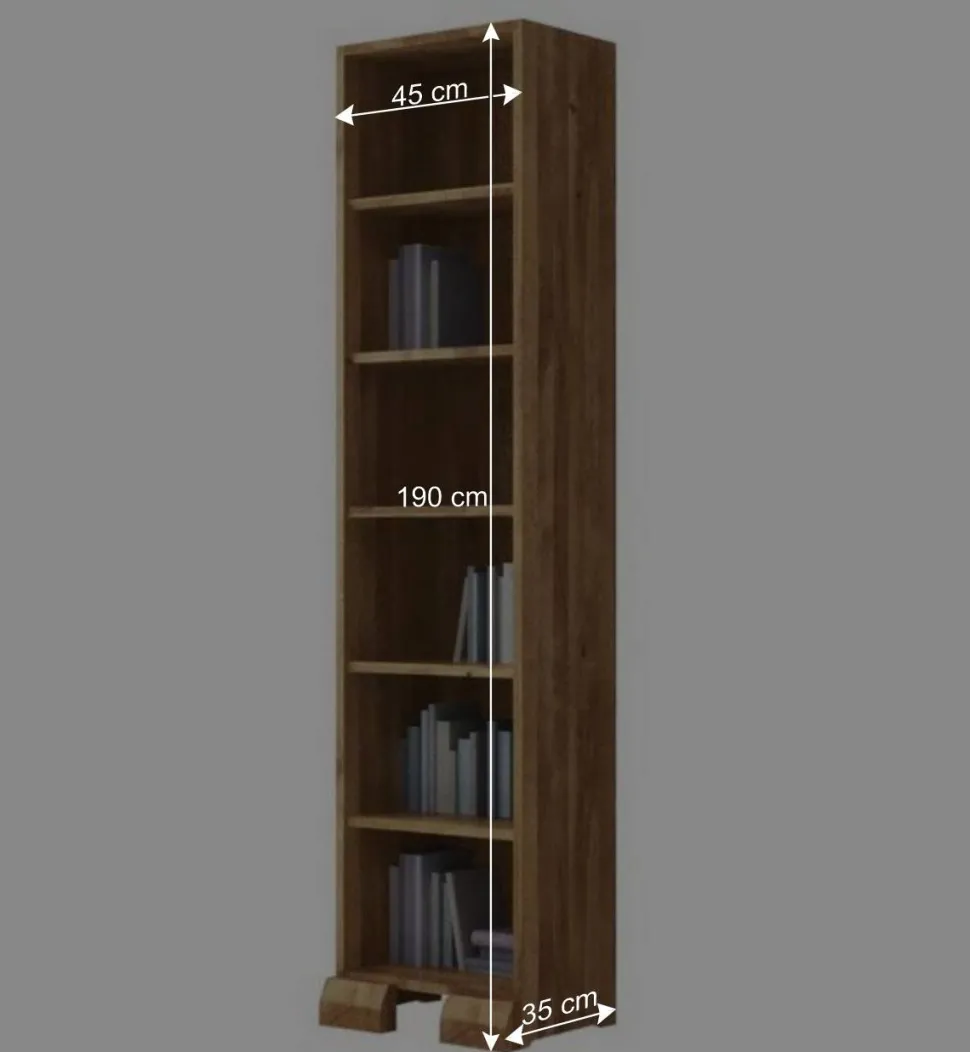 Mit den Maßen 45 cm Breite, 190 cm Höhe und 35 cm Tiefe findet das Regal „Vaskov“ in jedem Raum seinen Platz. Die fünf großzügigen Ablageböden bieten ausreichend Stauraum für Bücher, Dekorationsobjekte und vieles mehr. Die durchgehenden Seitenteile und die stabile Rückwand sorgen für zusätzliche Stabilität und Robustheit. Die Oberplatte hat eine Stärke von 2 cm, was die hochwertige Verarbeitung dieses Möbelstücks unterstreicht.