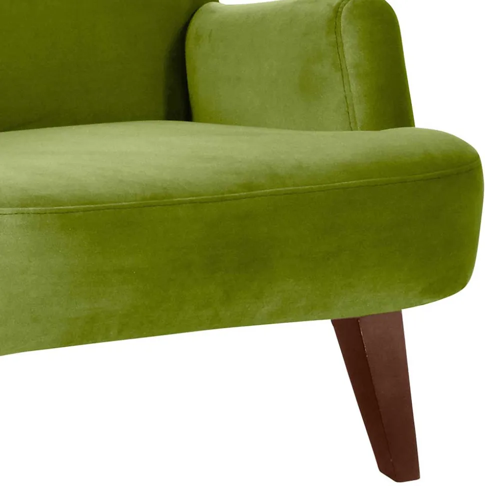 Der olivgrüne Samtvelours-Bezug verleiht dem Sessel eine luxuriöse Anmutung, ist aber zugleich pflegeleicht und strapazierfähig. Samtvelours aus Polyester ist bekannt für seine Langlebigkeit und Pflegefreundlichkeit, sodass „Sofia“ auch nach Jahren noch wie neu aussieht und keinerlei Einbußen in Farbe oder Textur aufweist.