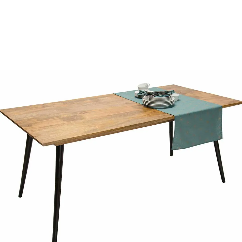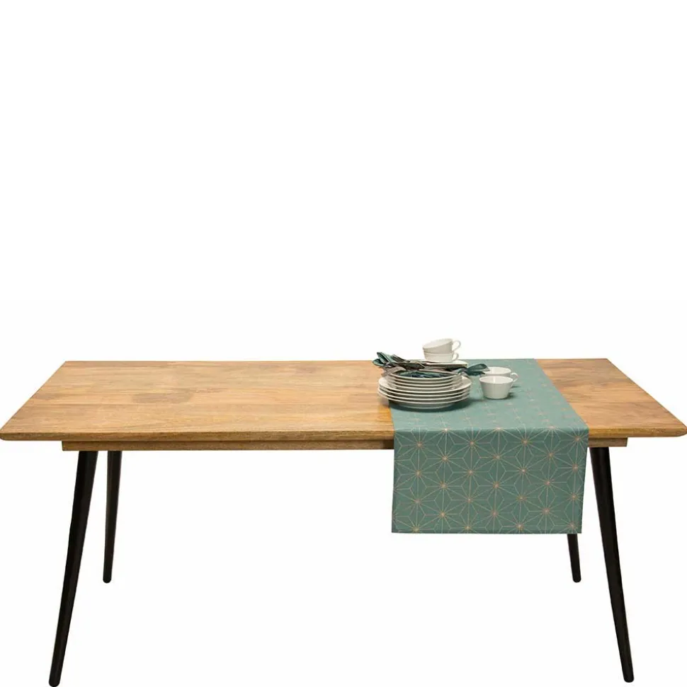 Ein Highlight dieses Tisches ist die Verwendung von massivem Mangobaumholz für die Tischplatte. Mangobaumholz ist bekannt für seine Langlebigkeit und seine beeindruckende Maserung, die jedem Stück ein einzigartiges Aussehen verleiht. Zusätzlich ist das Holz naturfarben lackiert, um seine Schönheit zu betonen und gleichzeitig einen wirksamen Schutz gegen alltägliche Abnutzung zu bieten.