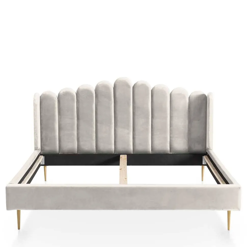 Das Bett ist mit einem eleganten, schimmernden Samtbezug aus 100 % Polyester in einem zeitlosen Beige bezogen. Der Stoff überzeugt nicht nur durch seine edle Optik, sondern auch durch seine hohe Strapazierfähigkeit und Pflegeleichtigkeit. Das dekorativ abgestufte, schaumstoffgepolsterte Kopfteil mit einer Höhe von 115 cm bietet dir nicht nur höchsten Komfort beim Lesen oder Fernsehen, sondern sorgt auch für eine besonders gemütliche und einladende Atmosphäre.