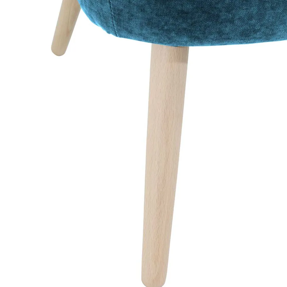 Etura ist nicht dafür gemacht, in der Ecke zu verschwinden. Dank seines echt bezogenen Rückens lässt er sich frei im Raum platzieren und wirkt aus jedem Winkel ästhetisch und durchdacht. Die leicht nach außen geneigten, lackierten Buchenholzfüße unterstreichen den Retrocharakter und sorgen gleichzeitig für eine stabile Basis bei bis zu 120 kg Belastbarkeit. Die elegante Doppelnaht auf der Sitzfläche und die charmanten Zierknöpfe auf der gerundeten Rückenlehne setzen stilvolle Akzente – ein Möbelstück mit Persönlichkeit.