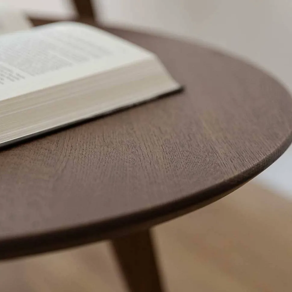 Der Retro-Wohnzimmertisch „Borganel“ bringt charmante Nostalgie in Ihr Zuhause und fügt sich mit seiner kompakten Form perfekt in jedes Wohnzimmer ein. Mit seiner dunklen Eiche und der braun geölten Oberfläche strahlt er Wärme und zeitlose Schönheit aus. Seine runde Form, gepaart mit der hochwertigen Verarbeitung, macht diesen Tisch zu einem stilvollen Begleiter in Ihrem Wohnbereich. Ideal für kleine bis mittelgroße Räume, wo er nicht nur funktional, sondern auch als optisches Highlight überzeugt.