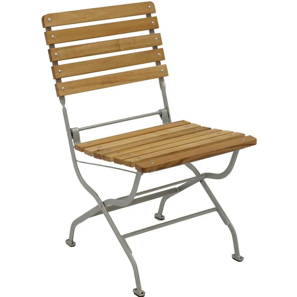 - Belastbarer Biergarten Klappstuhl in Robinie und Silberfarben