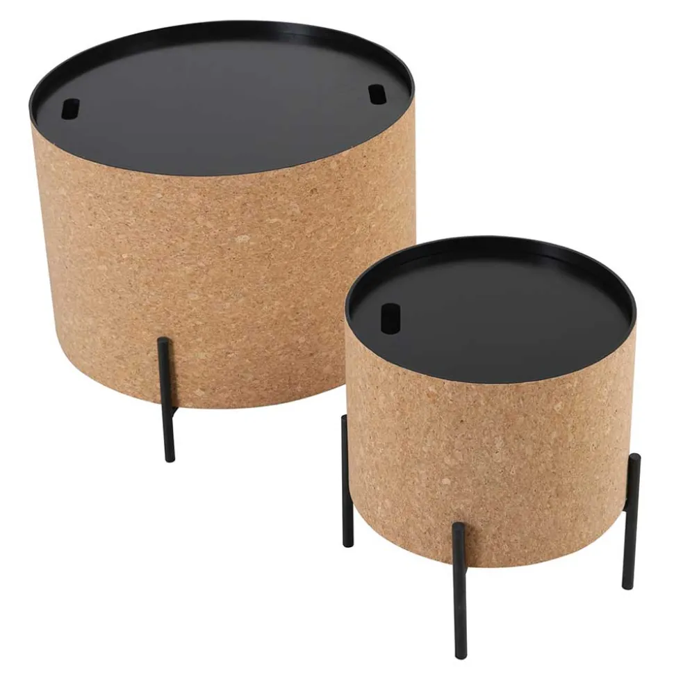- Attraktive Beistelltische in Kork Naturfarben und Schwarz