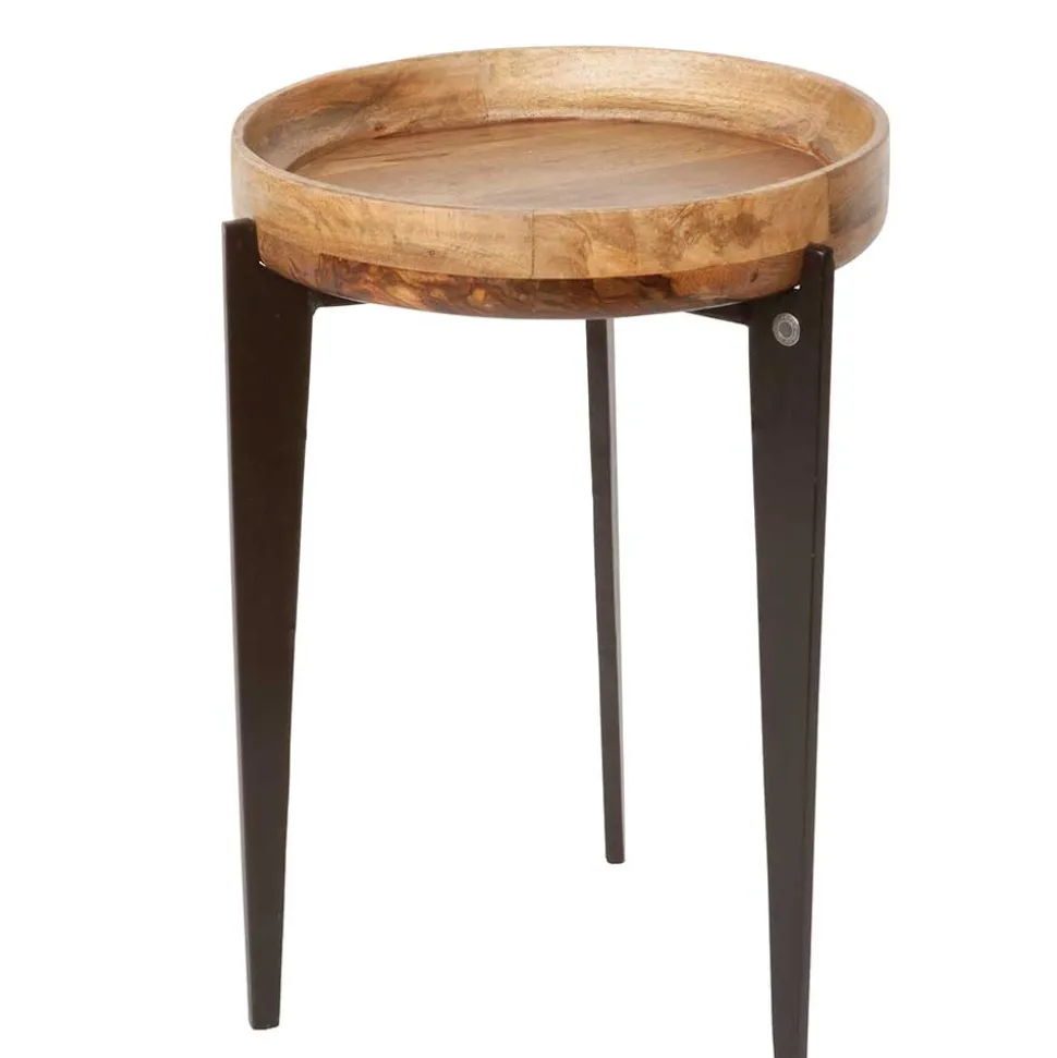 Verleihen Sie Ihrem Wohn- oder Essbereich einen Hauch von industrieller Eleganz mit dem Beistelltisch „Offia“. Inspiriert durch den robusten Charme urbaner Loft-Wohnungen und die klare Funktionalität industrieller Designelemente, kombiniert dieser Tisch Stil und Substanz in Perfektion. Ein Meisterwerk der Handwerkskunst, gefertigt aus massivem Mangobaumholz und ergänzt durch ein markantes, schwarz lackiertes Dreifußgestell.