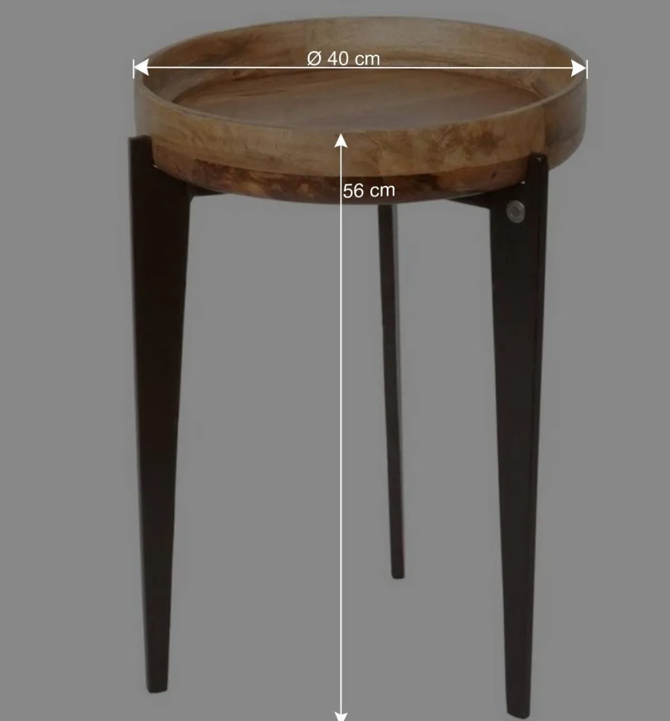Mit einer Breite und Tiefe von 40 cm sowie einer Höhe von 56 cm bietet dieser Beistelltisch ausreichend Platz, um Ihre Lieblingsdekorationsstücke zu präsentieren oder als praktische Ablagefläche neben Ihrem Sofa zu dienen. Die runde Tischplatte mit abgerundeten Kanten ist nicht nur ein Blickfang, sondern auch äußerst praktisch: Sie verfügt über einen hochgezogenen Rand und kann abgenommen und als separates Tablett verwendet werden. Ideal für Abende, an denen Sie Ihre Gäste mit Stil bewirten möchten!