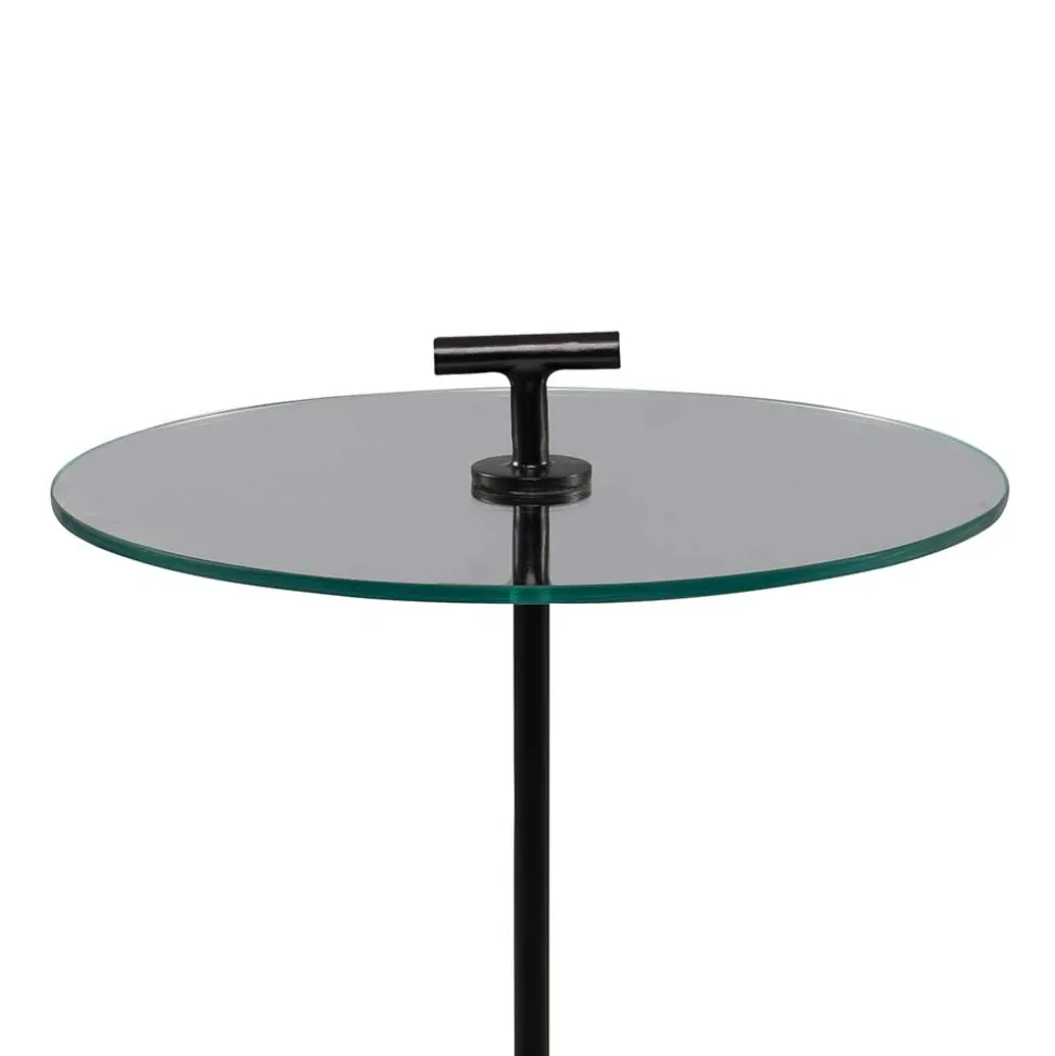- Geschmackvoller Beistelltisch in Transparent, Schwarz und Akaziefarben