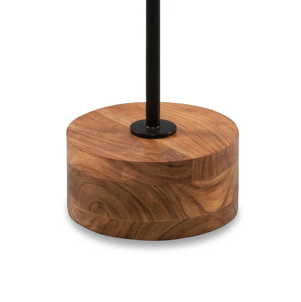 - Säule aus schwarz lackiertem Metall und ein Sockel aus Akazienholz