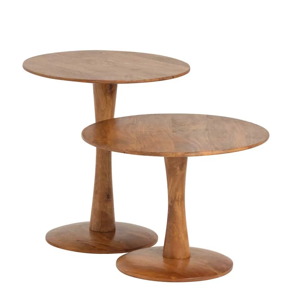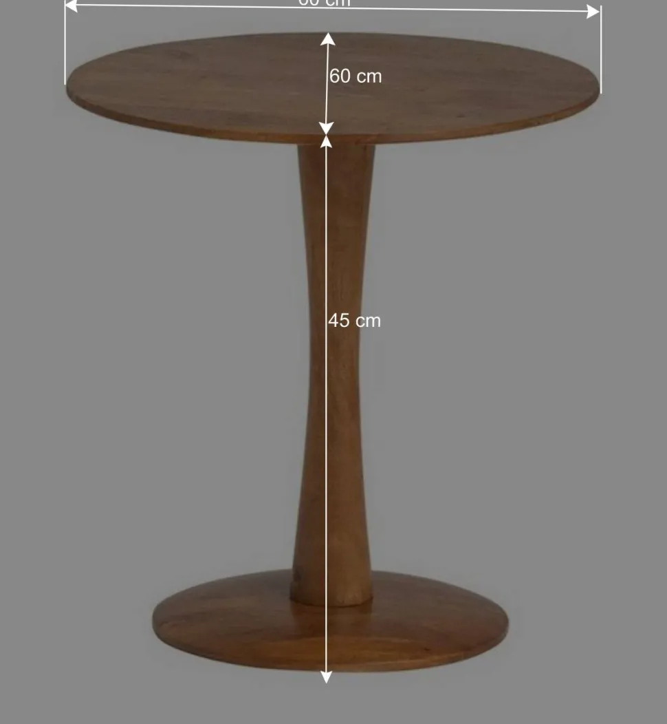 Die Oberflächen des Beistelltisches sind in einem edlen Cognacfarbton lackiert. Diese Lackierung betont die lebhafte Maserung des Mangoholzes und verleiht dem Tisch eine warme, einladende Optik. Gleichzeitig bietet sie einen optimalen Schutz vor Feuchtigkeit und Kratzern, sodass der Tisch auch nach Jahren noch wie neu aussieht.