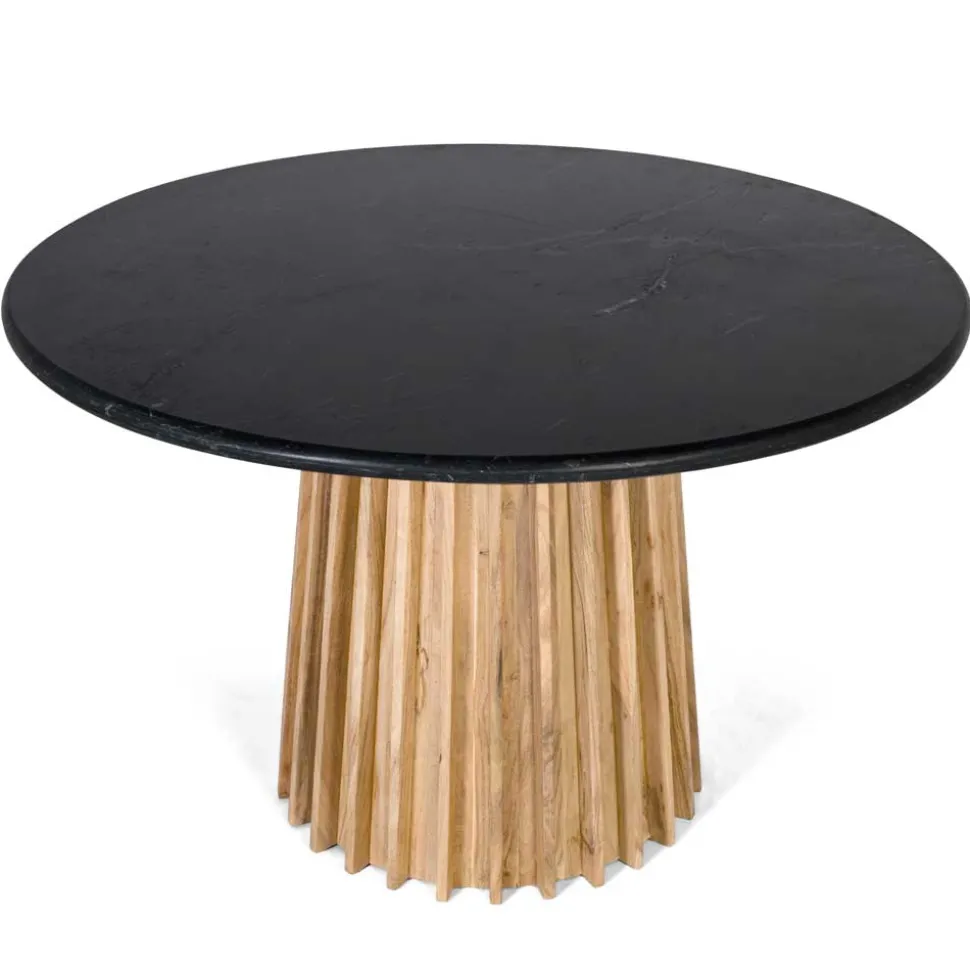 - Hochwertiger Esstisch in Schwarz marmoriert und Mangoholz Naturfarben