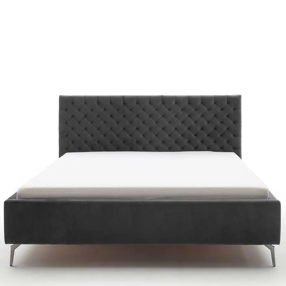 - Attraktives Polsterbett in Anthrazit und Chromfarben