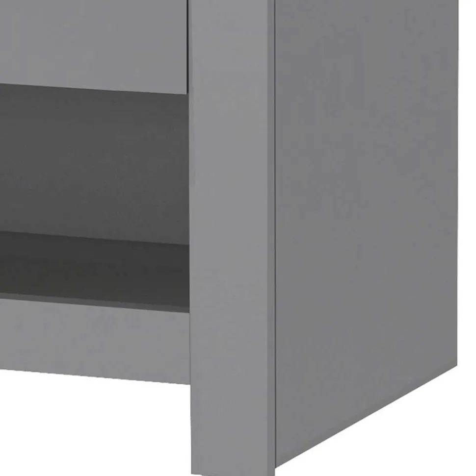 Praktische Stauraumlösung für vielseitige Nutzung Die Nachtkommode bietet eine Schublade mit leichtgängigem Metallauszug für eine geordnete Unterbringung von kleinen Alltagsgegenständen. Zusätzlich befindet sich unten ein offenes Fach, das ideal für Dekoration oder schnelle Ablageflächen geeignet ist.