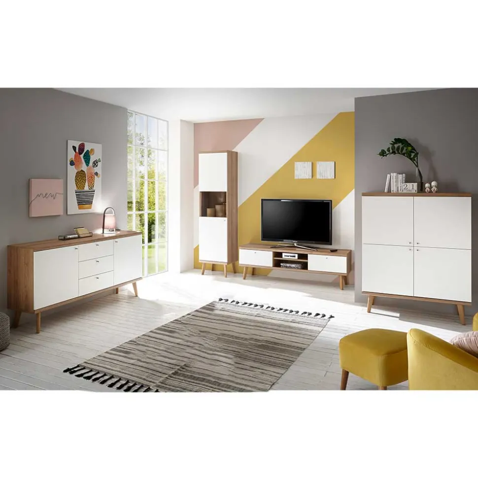 - Geschmackvolle Wohnkombination in Weiß und Eichefarben