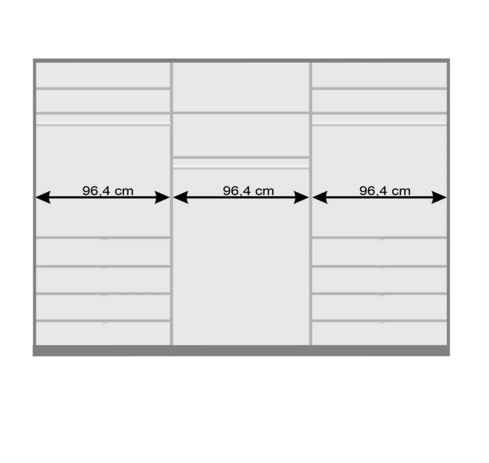 - Breite der einzelnen Elemente innen: 96,4/96,4/96,4 cm