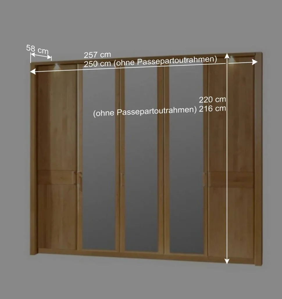 - Maße BxHxT: 250x216x58 cm (ohne Rahmen)