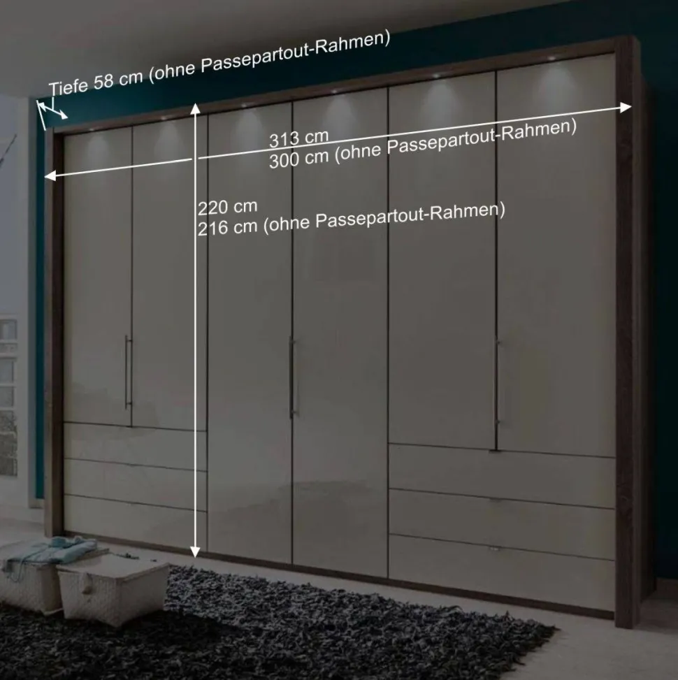 - 307 cm Breit, 220 cm Hoch, 58 cm Tief