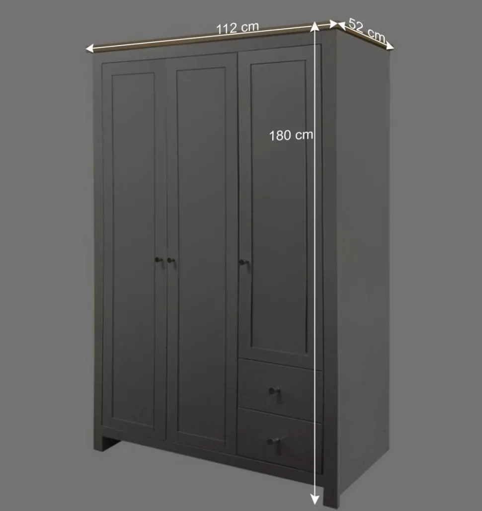 Ein Hauch von ländlicher Gemütlichkeit zieht in Ihr Zuhause ein: Der Kleiderschrank Poliesti vereint den unverwechselbaren Charme des Landhausstils mit einer klaren, modernen Linienführung. Typisch für diesen Stil ist die warme, wohnliche Ausstrahlung, die sofort Geborgenheit vermittelt und jeden Raum in eine Wohlfühloase verwandelt. Sanfte Grautöne, eine an Eiche erinnernde Oberplatte und feine Details im Design schaffen ein harmonisches Gesamtbild, das Tradition und zeitgemäßes Wohnen perfekt verbindet.