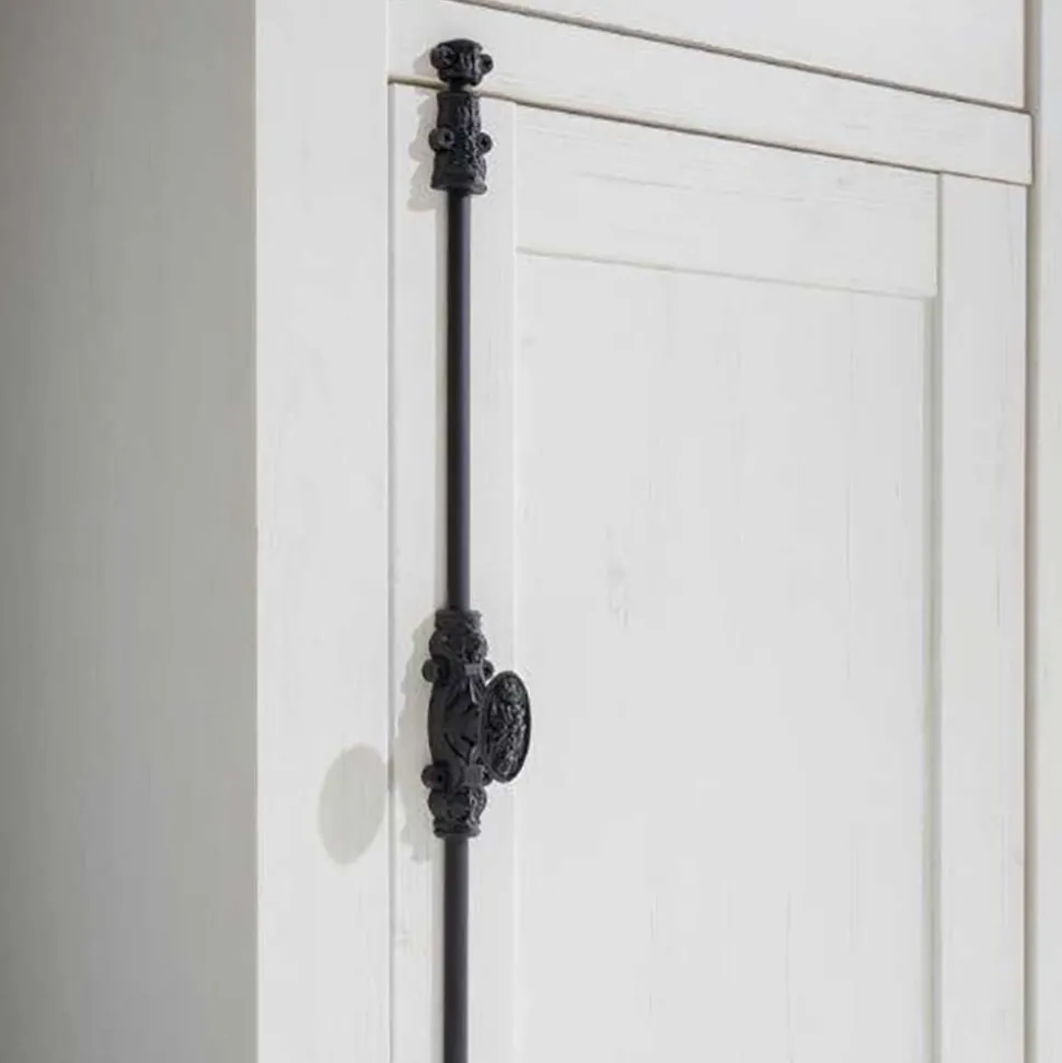Robuste Kantenverarbeitung, wunderschön abgeschrägte Oberböden und Türfronten in der trendigen Kassettenoptik verleihen jedem Stück seinen einzigartigen Charakter. Solide Metallauszüge an den Schubladen versprechen Langlebigkeit, während die klassischen Knopfgriffe und rustikalen Stangengriffe aus schwarzem Metall einen reizvollen optischen Kontrast setzen.