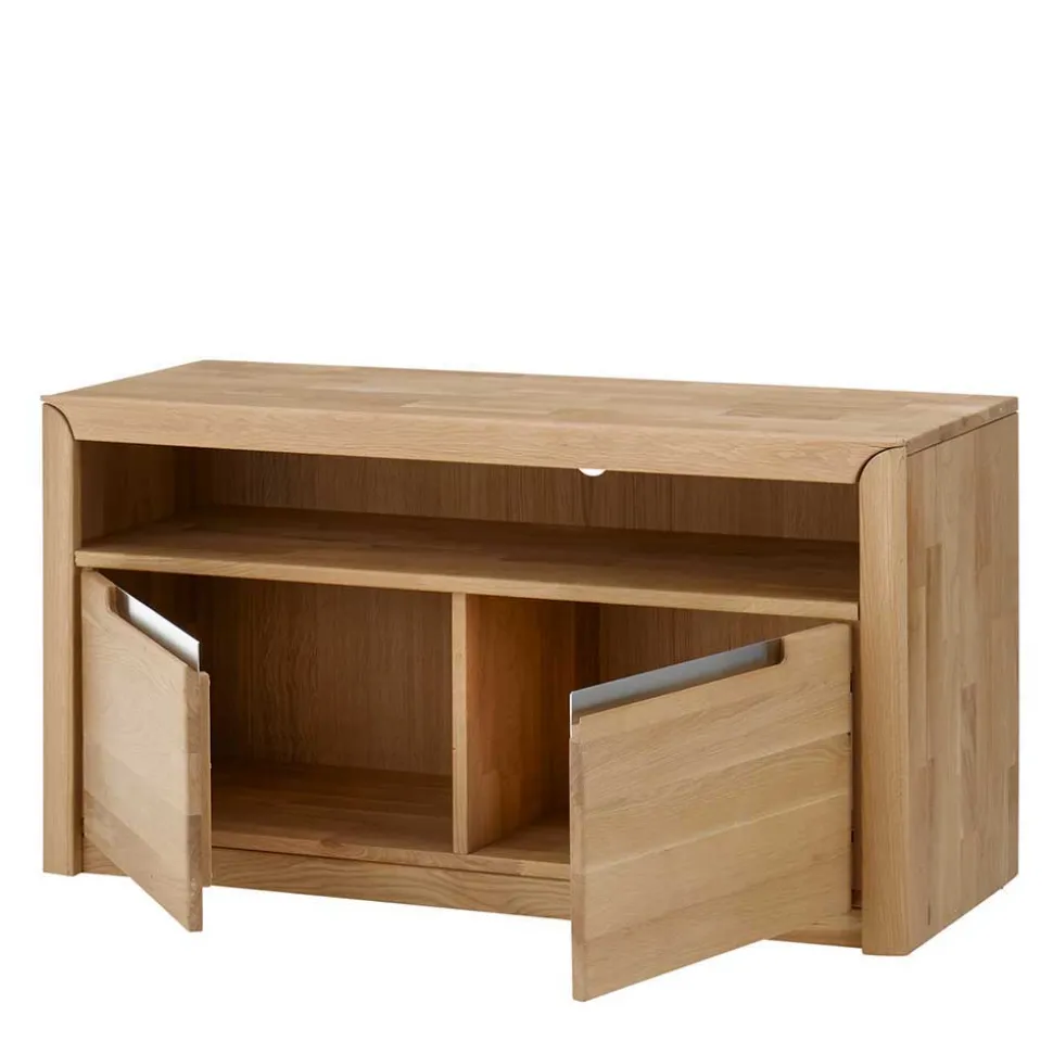 Ein besonderes Highlight dieser Wohnwand ist das verwendete Material. Sie wurde aus massiver Wildeiche gefertigt, die für ihre beeindruckende Robustheit und Langlebigkeit bekannt ist. Wildeiche zeichnet sich durch ihre markante Maserung und ihre warme Ausstrahlung aus, die Ihrem Wohnraum eine natürliche und gemütliche Atmosphäre verleiht. Darüber hinaus ist die Oberfläche der Wohnwand hell geölt und gewachst, um sie vor äußeren Einflüssen zu schützen und ihre natürliche Schönheit zu bewahren. Diese Behandlung verleiht dem Holz zudem einen angenehmen Glanz und eine sanfte Haptik.